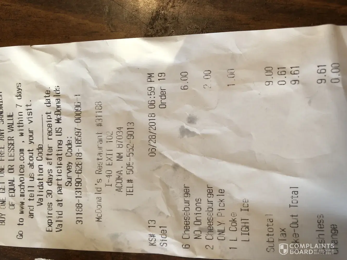 Ordered a quarter pounder with no mustard and pickle as I'm allergic to mustard and dislike pickles. I bit into my burger and immediately realized it was wrong with both mustard and pickles. I've been to this restaurant several times in the past. I haven't been back due to the attitude and faulty service and prefer to go to the other McDonalds restaurants in town. However it's the closest to my residence and I keep giving it a chance. I just wish theyd get an order right for once as the other restaurants do.