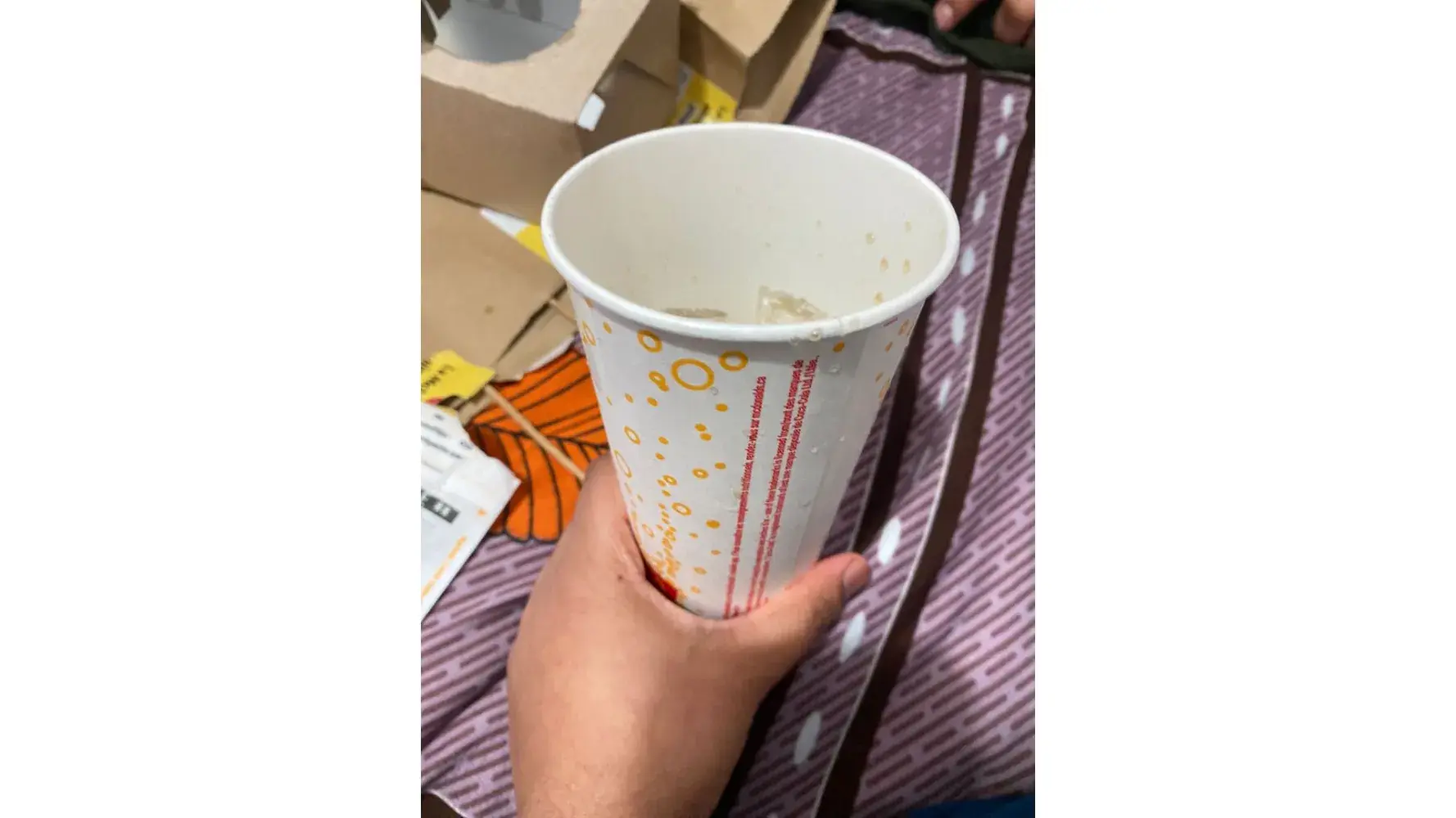 I recieved cold stale fries that was less then half way full in the box for $3.69 and the box had what appeared to be red lipstick on it which is unacceptable and disgusting and my cheeseburger wasn't wrapped in the paper threw the drive thru extremely rude employees and managers