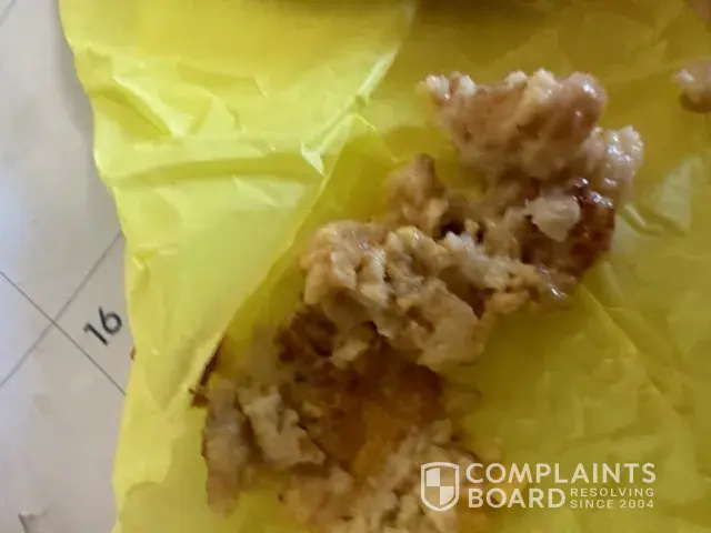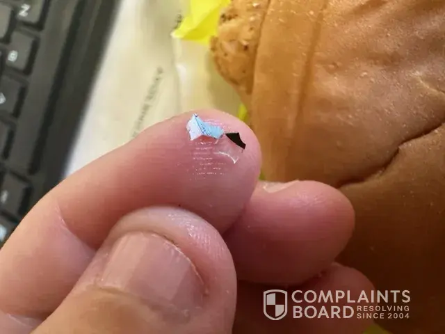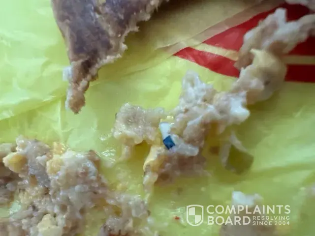 Today 05/30/23 at about 12:10pm today I got Mc chickens with nothing but cheese and mac sauce on it and the first one i ate was fine the second one i was chewing and crunch crunch between my and spit it out in my hand and there glass in my food