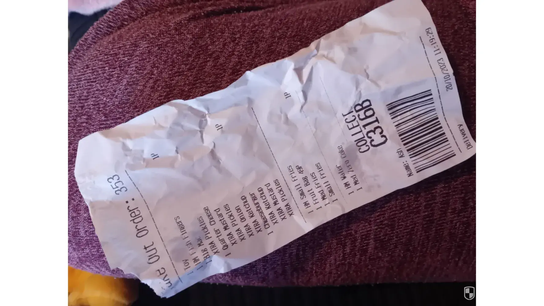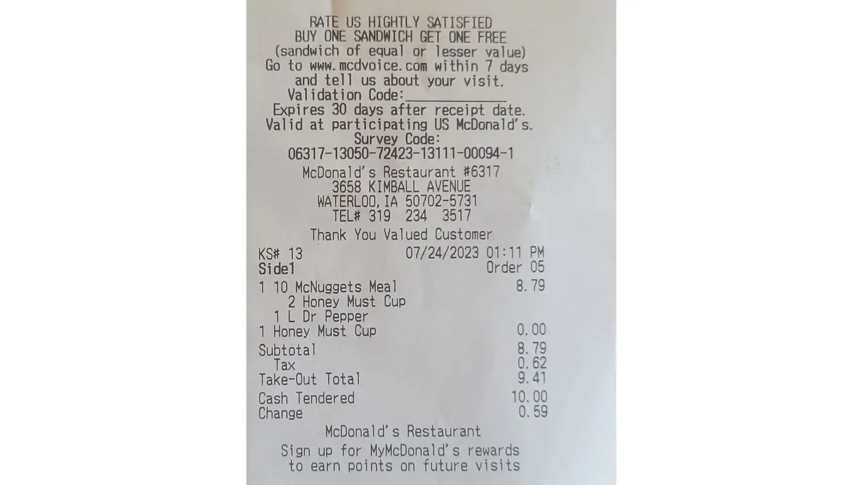I did not get my receipt unfortunately. I have an image of meal.