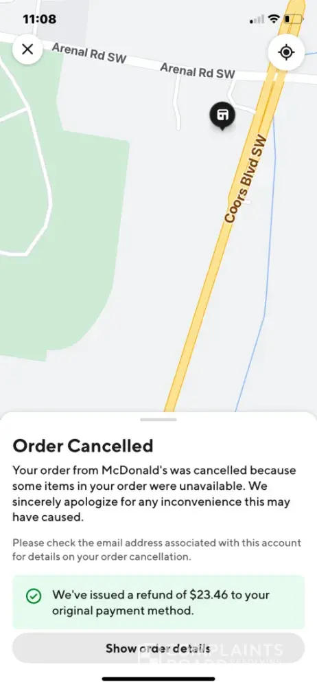 I ordered breakfast at 10:24 am on door dash, when the dasher got there they stated they weren’t serving breakfast and refunded 23.46 of a 31.29 total. Due to the fact that their team didn’t want to fulfill the order (should’ve been done by the time they got there) so I want my money back! This is a horrible way to treat your customers!