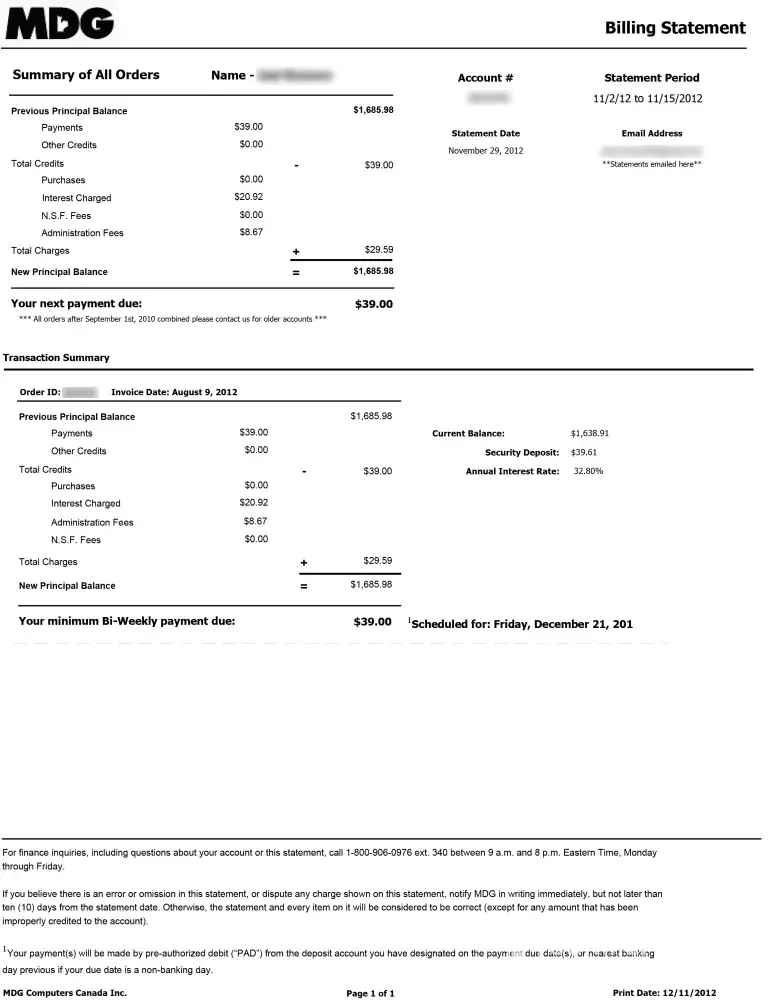 They are absolute crooks! Our computer was 1700$ and after 2 years, our balance was still over 1500$! I was making payments of $100 a month, so lets do the math; ***** = so thats 1200$ a year, so 2 years, i've paid 2400$! but supposedly I still have a balance of 15hundred/something...!/!//?