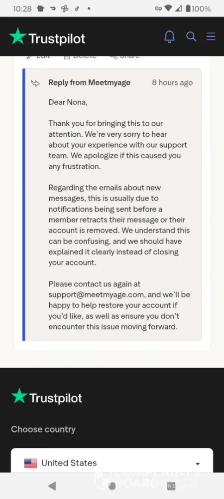 I had a guestion wrote in. Grace Sterling responded. She deleted my account without my consent. I tried to get support to fix it no luck. Reviewed on trust pilot and received a response. However the response was a lie. They can't restore your account. I definitely do not recommend this site. If they can make that big of mistake, I wonder what would happen...