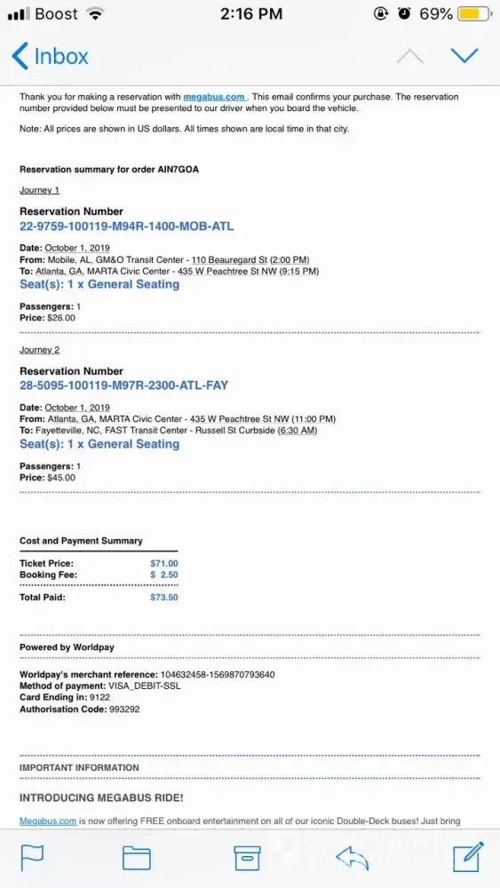 5. The Megabus Driver assured us that we will get a refund for Bus tickets and Uber (and it is standard for a service breakdown like this)