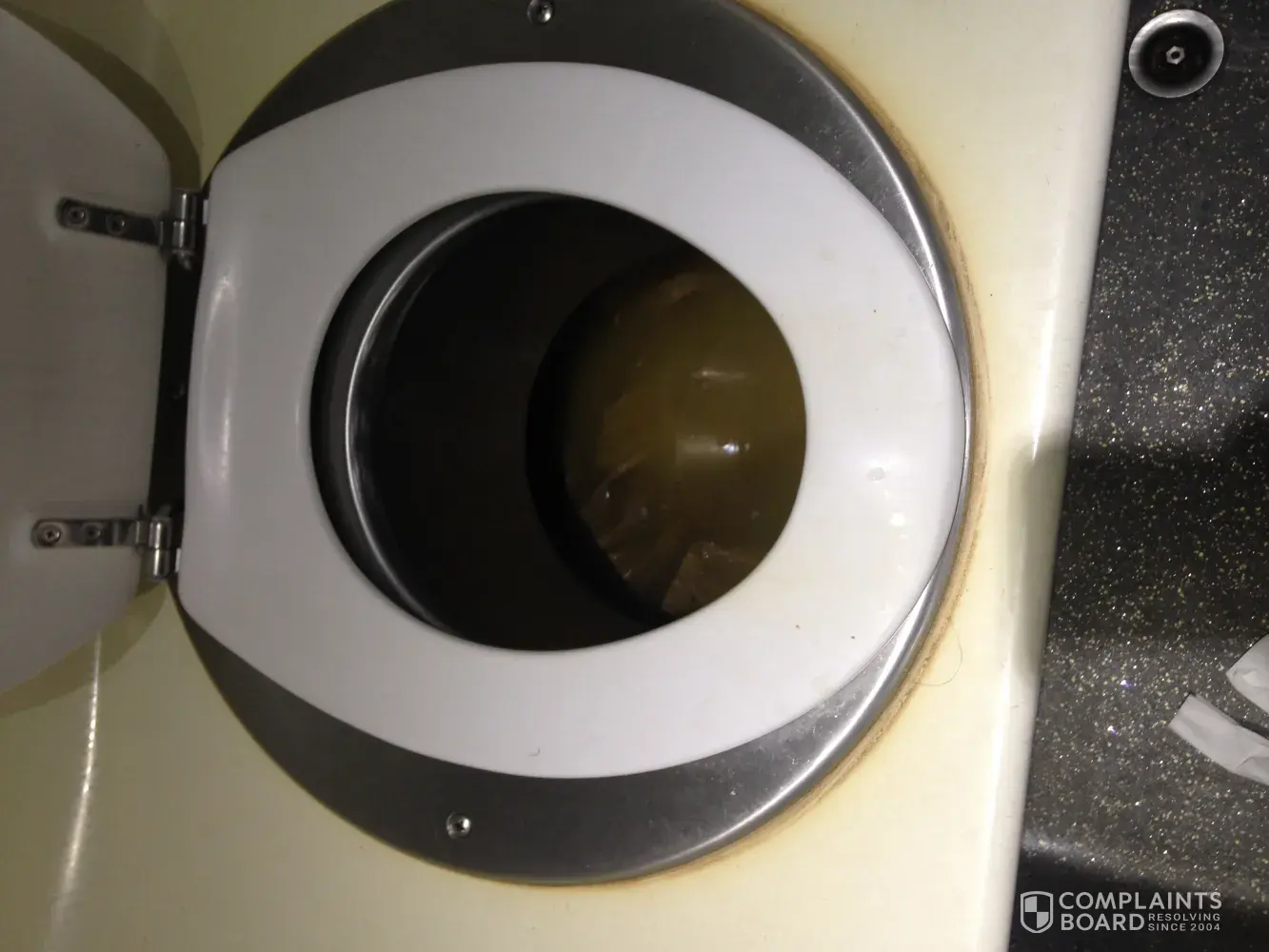 I am complaining about the horrific conditions of the restroom on the bus.