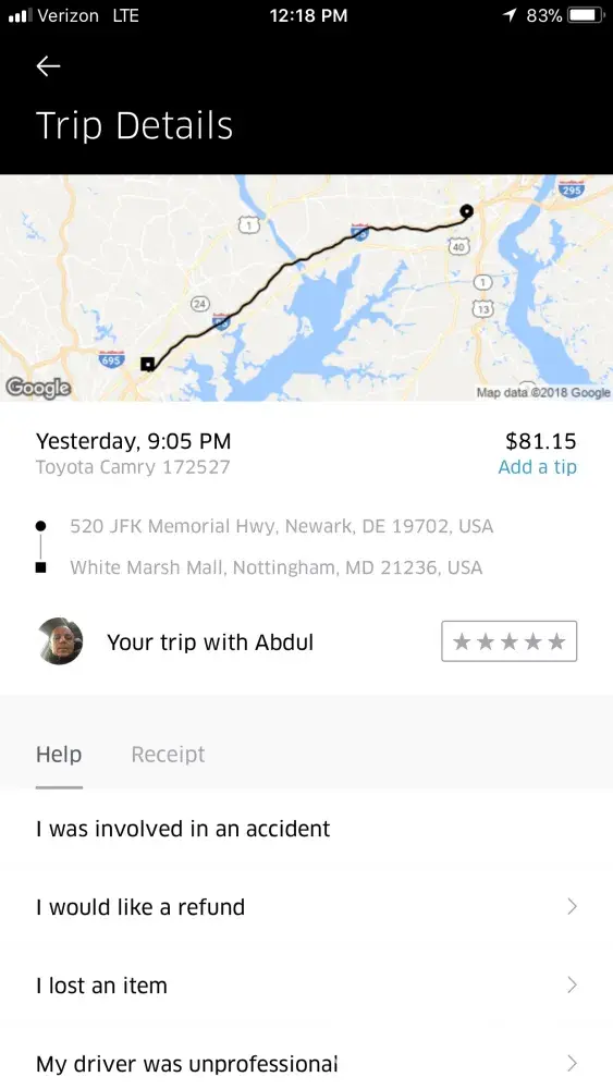i had to spend almost a 90 dollar uber to get to the bus stop in maryland to pick up my suitcase.
