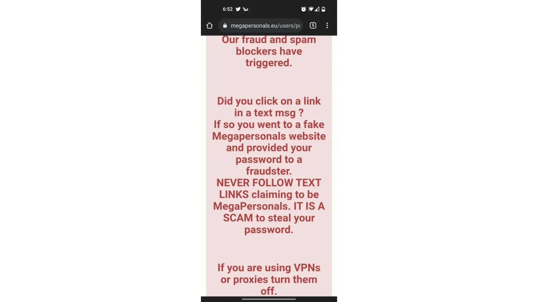 They're staying to turn off my proxies and bpms because if I click on a link it was not a mega personal text website and it's a scam to get my password when I go to login that's what it is saying and then it says the account is flagged for 14 days they have done this two three times now and I am not getting any issues resolved I am very upset about this please resolve this matter for me as soon as possible please thank you Sheila Keesler