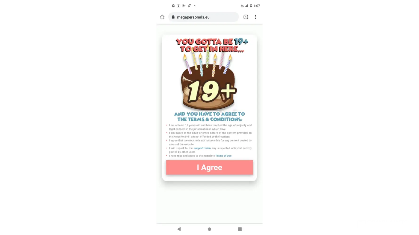After using this service for nearly 8 years I was suddenly not allowed in. I had to "verify " with BLUECHECK ID who asked me send in photo ID, Selfie AND todays date. After sending nearly 10 forms of phots and getting thru to megapersonals customer service AND Blue check they have continued to keep me banned. I'm still get massive spam from their website. As I am clearly over 21 years of age and in my 50s I am considering this "ageism".