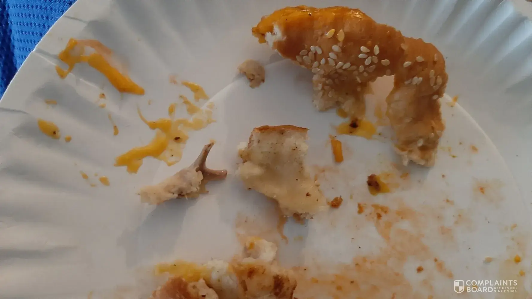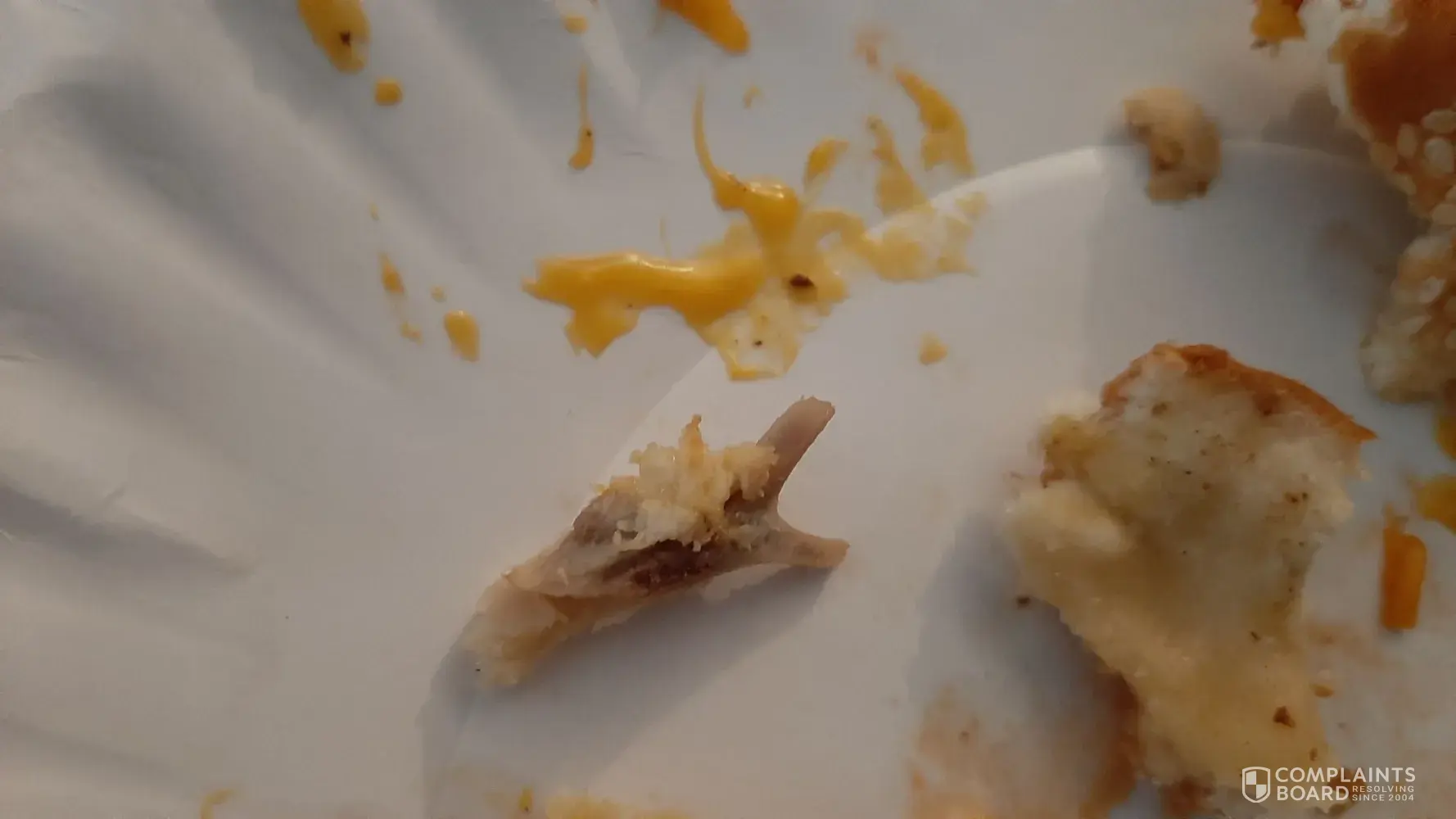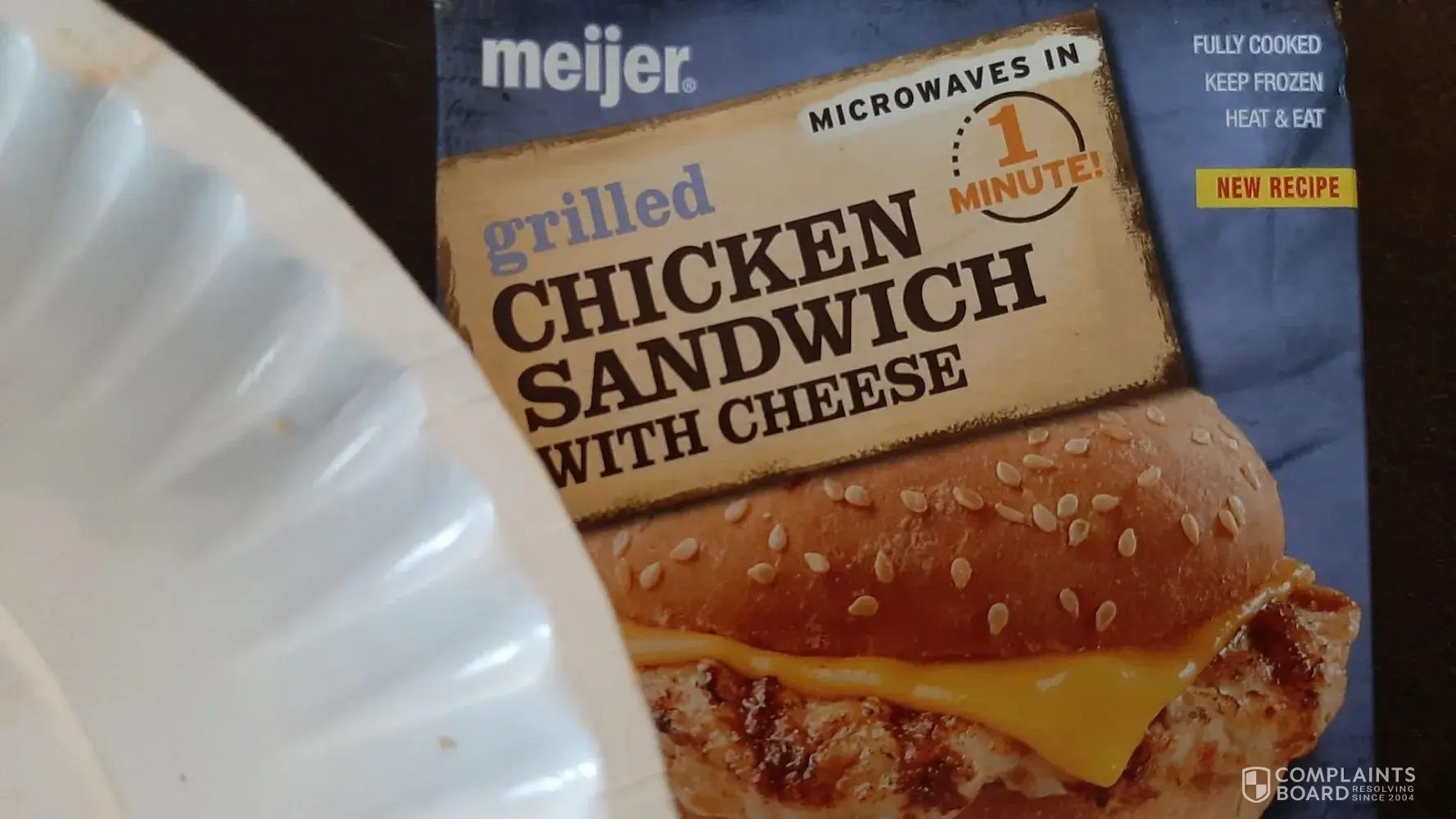 I was enjoying my grilled chicken and cheese sandwich (miejer brand) I bite into something hard and turned out to be some kind of bone of something..I have pictures to show . I purchased 7 of them ..now I am scared to eat the rest of them. I have receipt if need be. I love miejers its my go to store but that was not fun to bite into on my Saturday night ..glad I didn't chip a tooth. I don't how to put a price on my experience..that was absolutely horrible.