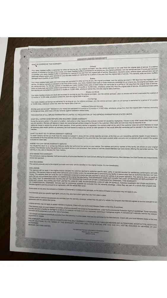I then contacted Meineke customer service to file a complaint. I called on Thursday 2/16/23. The customer service agent said he filed my complaint and I will be contacted in 48 hours. Well 48 hours came and went, and I called again on Monday 2/20/23 but the next customer service agent said I will hear back in 48 BUSINESS hours which could be 6 days. It is now 2/28/23 and we are getting the same run around no one has attempted to call back and return our calls. Customer Service can't give us any information other than "They will call you in 48 hours. Well it has been 64 hours. My car is not working and I am missing work. I am on the verge of losing my job and I need someone to help me. I am not sure if anyone is going to read this or even attempt to get back to me but it would be greatly appreciated if someone can please understand the frustration I have been through and please help me with a resolution ASAP. It is the right thing to do!