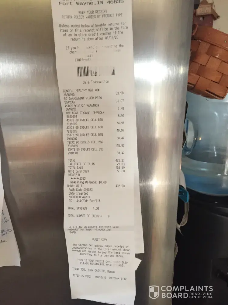 Menards Complaints Page 16 of 37