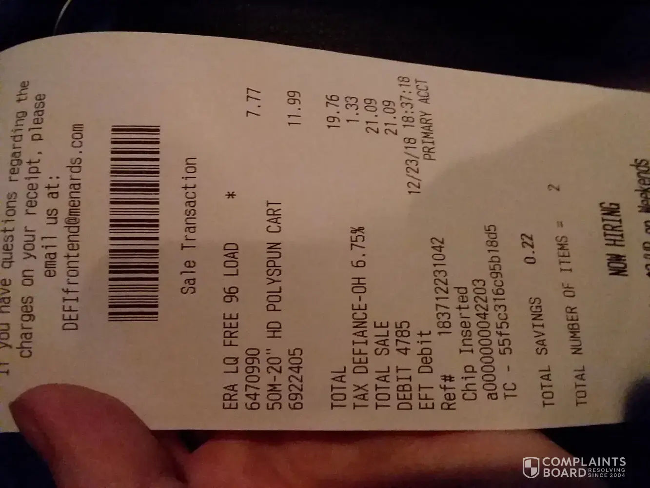 Dana at Defiance, Ohio store did not scan everything from my order that had been placed on the counter. These items were too large for a plastic bag, so once she gave me a total, I placed the large items back in my cart and paid my total due. After I had made my payment, she asked me if I already paid for those items. I was unsure what she was talking about until I asked which items. I asked if she scanned them and she told me "No. I didn't know they were part of the order." Attached is a photo of the receipt with the large items.