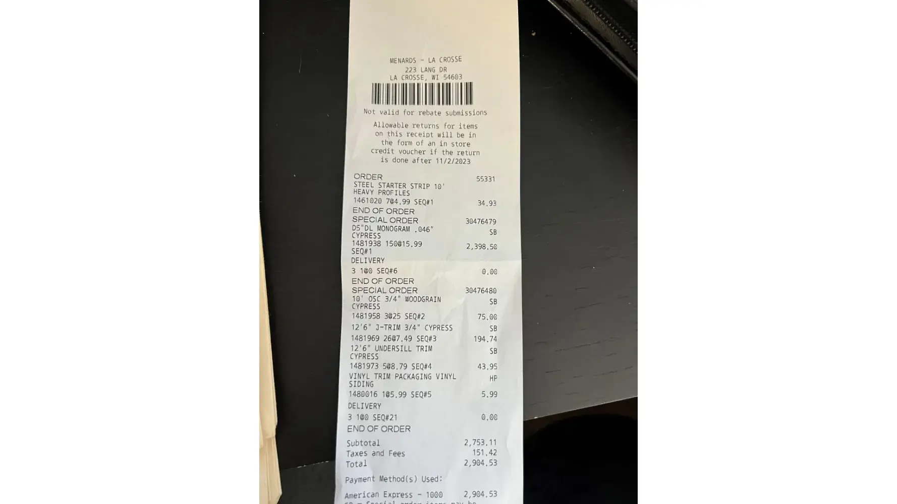 I am writing abut the return policy for siding. The order number was 3047679. it was for 150 pieces of D5 Monogram Cypress siding. I just had my house sided last year so I knew I needed the D5. I also knew it wasn't Dutch lap. I ended up with Dutch lap D5. The La Crosse store said it wasn't their fault. I don't believe it's my fault either. I have spent...