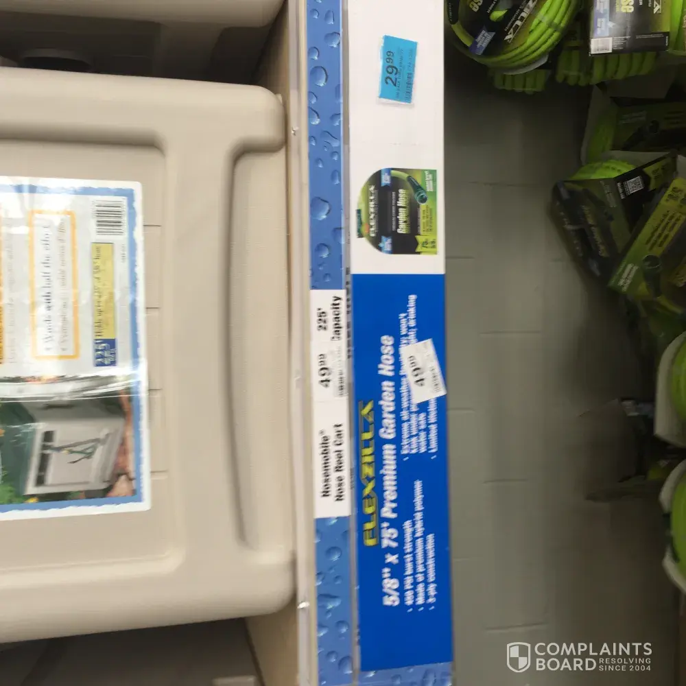 There were tags for $29.99 on each section. The 50' section and the 75' section. So I purchased the 75' hose. At the register they were $49.99. I met two managers on duty (sorry I didn't get their names) and they said they would not honer the pricing even though each section is individual.