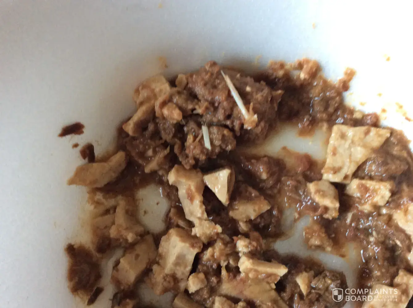 Bought your product. Cats always enjoyed it. Guess I got a bad batch. Saw adult cat choking. Realized she was choking on one of the bones that were in your product. There were actually 3 which were about an inch in length. Dislodged it and threw the remainder out. First issue with meow mix not sure if this is a one time incident or not. Looking at other food options to ensure the safety of my 3 cats. Would like to have the confidence to continue to buy your product.