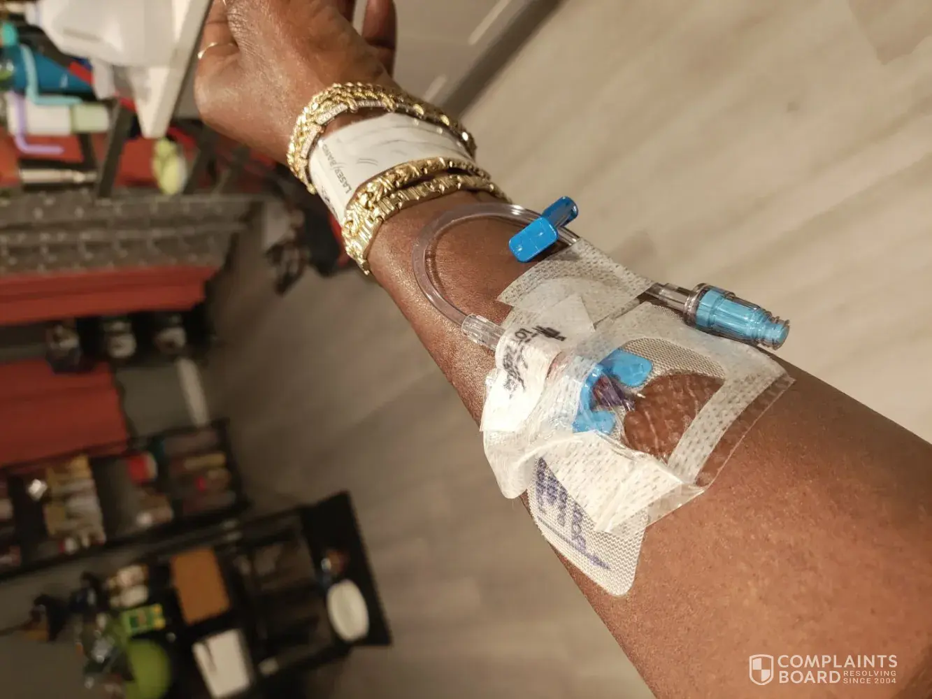 I was brought here on 1/28/2026 due to an auto accident. x-rays were taken. An IV was put into my left lower arm for a CT scan. The CT scan completed, I waited for the results and doctor. In the meantime, the IV started to hurt. I approached the young lady who was conducting all of the vitals and the young man (Asian/streaked hair/Triage) and sked could the...