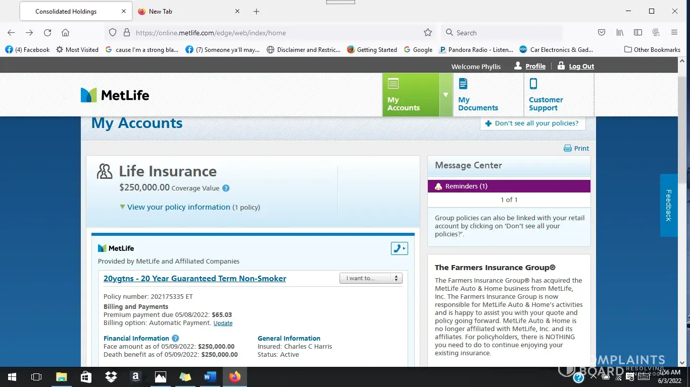 I have not gotten a response regarding the draft for my son who is insured and I the policy owner. I recently inquired on line as to why a transaction hasn't been sent for the new premium amount of 72.25 for May. A new automatic draft form Electric Payment (EP) Account Agreement was submitted by fax 4-28-22 after the help of a customer service representative by phone who assisted me with filling out the information. I indicated that the date for this is to be the 27th of each month. According to the Automatic Payment Information attached the base is 65.03. The bank information is correct and it states the status is active showing policy 202175335ET is paid to 5-8-22. Nothing has come through my account ending in 1379. I also am registered on line metlife.com where I can log into the account and I'm having difficulties on the website 6-5-22 and 6-6-22 after midnight.