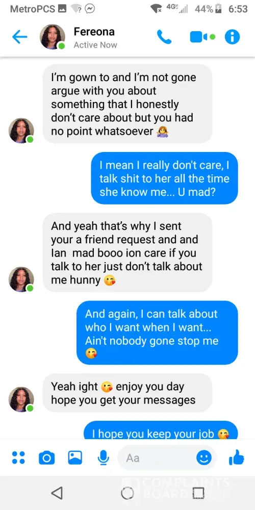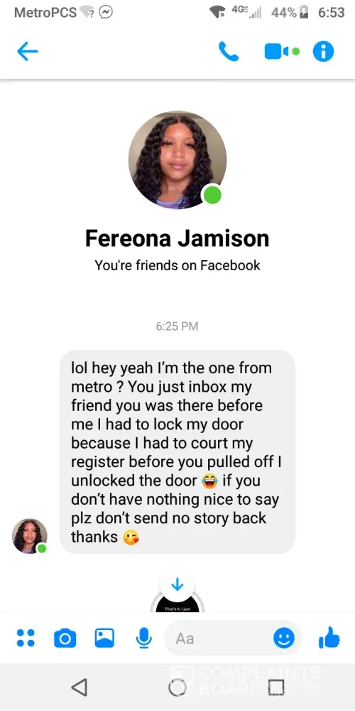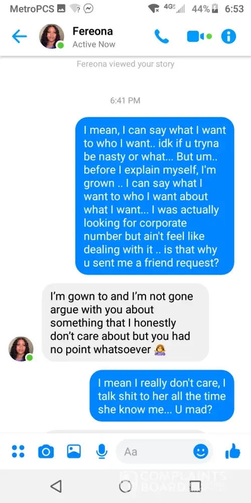 I visited the store on 7/18/2019 to temporarily switch my phone over to an old device because one had broken. Fereon was the representative that day so when I figured I wasn't receiving messages from certain ppl, I went back today 7/21/2019. Store was supposed to open at 12, no one was in. She pulled up late and locked the door, but I found out she had to...
