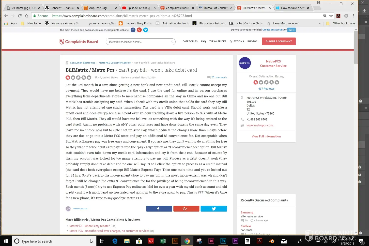Please go to: The Federal Trade Commission Website and report MetroPCS for scamming their customers by charging a $3 fee to simply pay their bill in person and their online service doesn't accept all cards.
