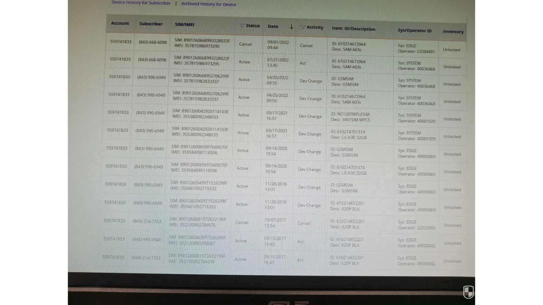 We went back to our local Hendersonville PCS store on Gallatin Rd. on Sunday, 9/25, around 4 p.m., and the store was closing, so we went back on Monday, 9/26. We told the associateTroy about our situation, and he was unable to unlock the IMEI number [protected] for the new phone. We contacted Mike at customer service, and he was unable to assist in unlocking the phone.