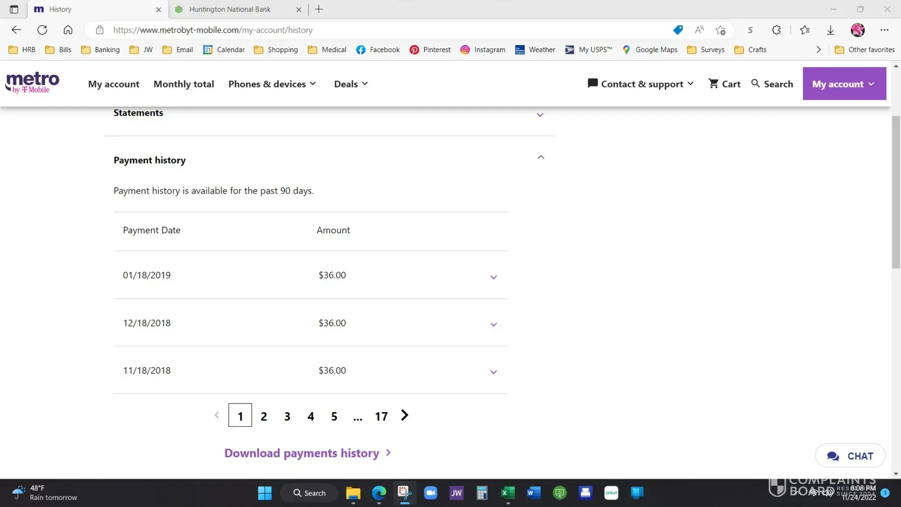 f. Billing statements are only available for the past three months. After realizing this, I began saving the statements starting with the October 2022 statement.