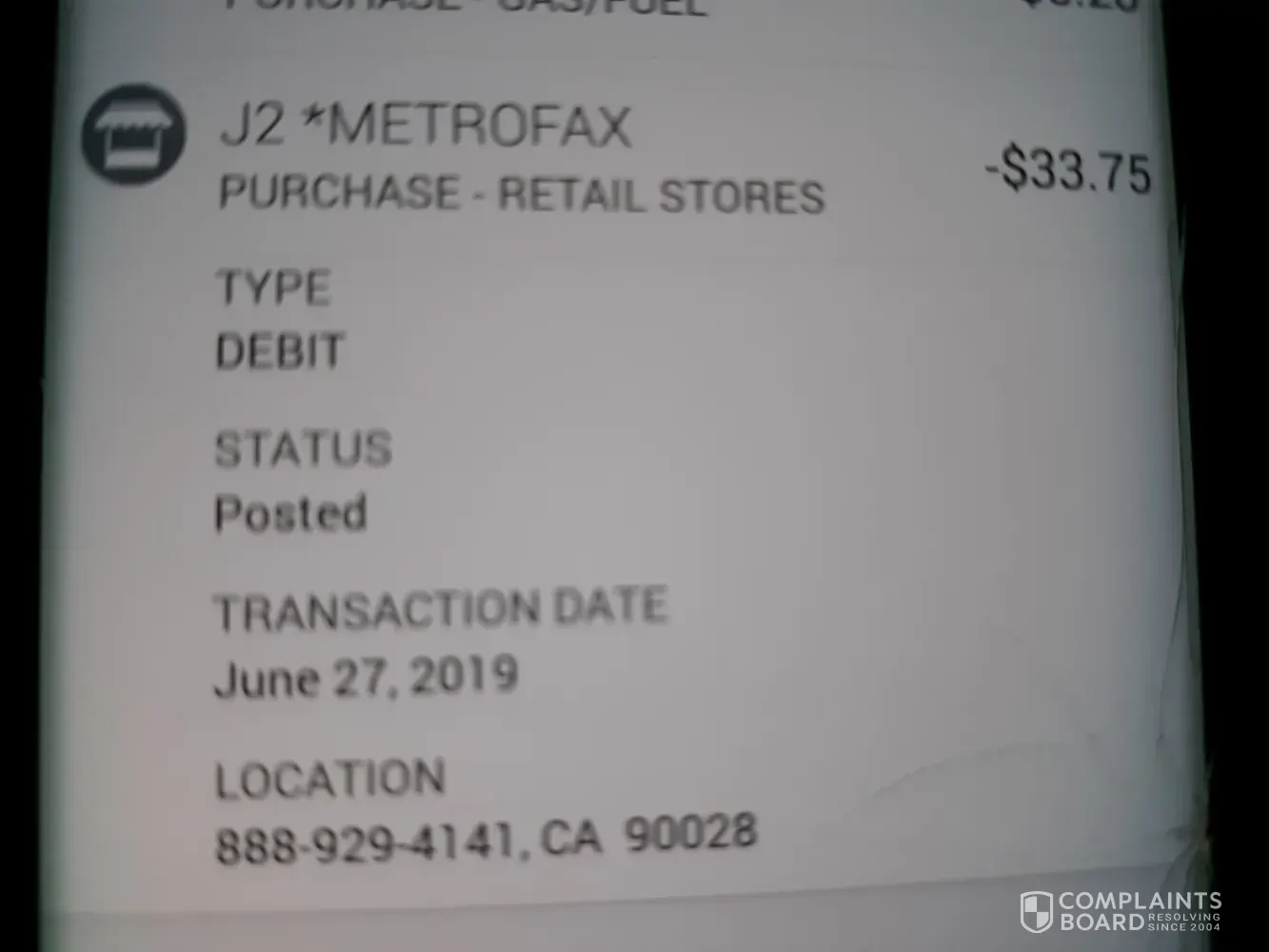 I have had money taken off my debit card thru metrofax amount of 33.75 and I dont even have a account or service thru your company or anything.. I would like my 33.75 dollars refunded back to my debit card.. because we dont even k owed what this company offers or has... the transaction was on June 27 2019 at location [protected] CA 900028... my debit card ending in 0191. My debit card number shouldn't even be on file for any service thru your company