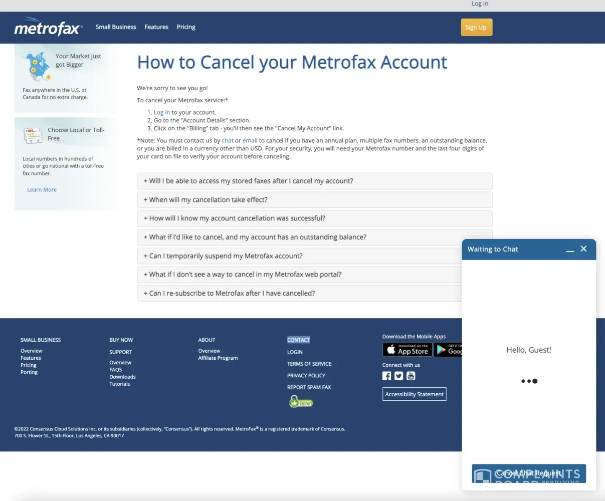 I had an account on www.metrofax.com and was a subscribed member. Recently I've decided to cancel my membership so I went to their website and tried to find some information how to cancel my account. There was a terrible lack of information and I wasn't able to understand what exactly I need to do. Then I contacted MetroFax customer service and asked for...