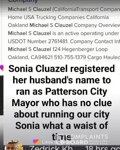 No Michael Clauzel as a mayor for City of Patterson CA