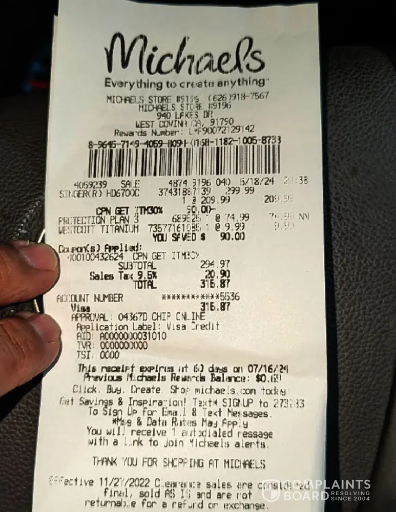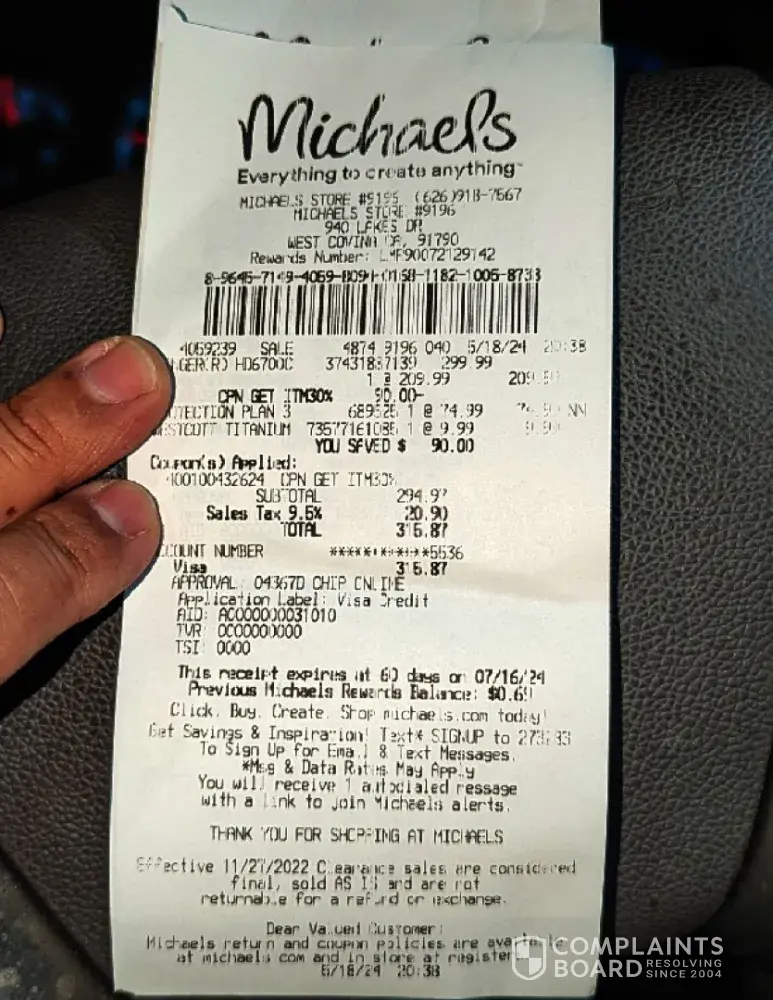Read full complaint and 1 comment5 Michaels Stores Reviews