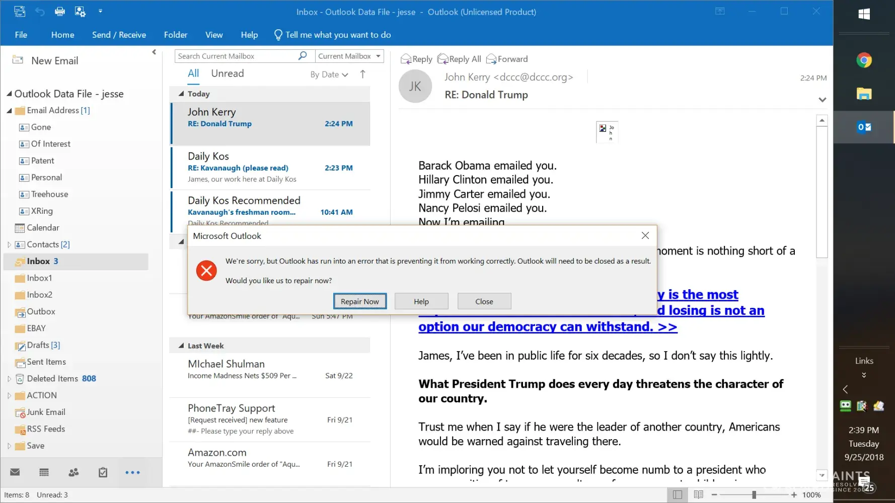 Office 365 has been very unstable, an error message keeps showing up, see below, since I signed up over 2 months ago, and there is no indication that MS is trying to solve the problem. I have had support look at it multiple times with momentary improvement, then within a couple of days the error message shows up again. I don't believe I am the only one with this problem because I have seen reference to it on multiple boards.