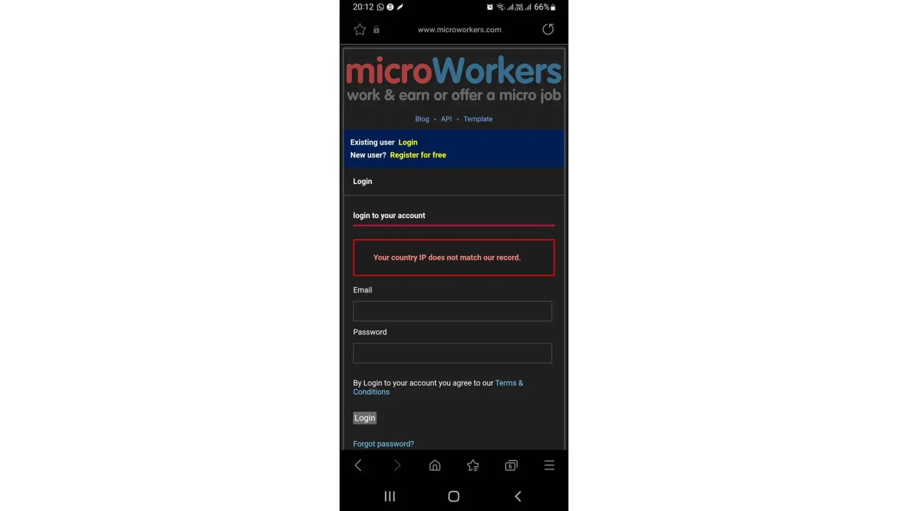 I log in in microworker account and confirm email, then I confirm my email. Then they ask to log in I put my email password then they answer me your IP is not unique then I forget and again login I receive same answer.