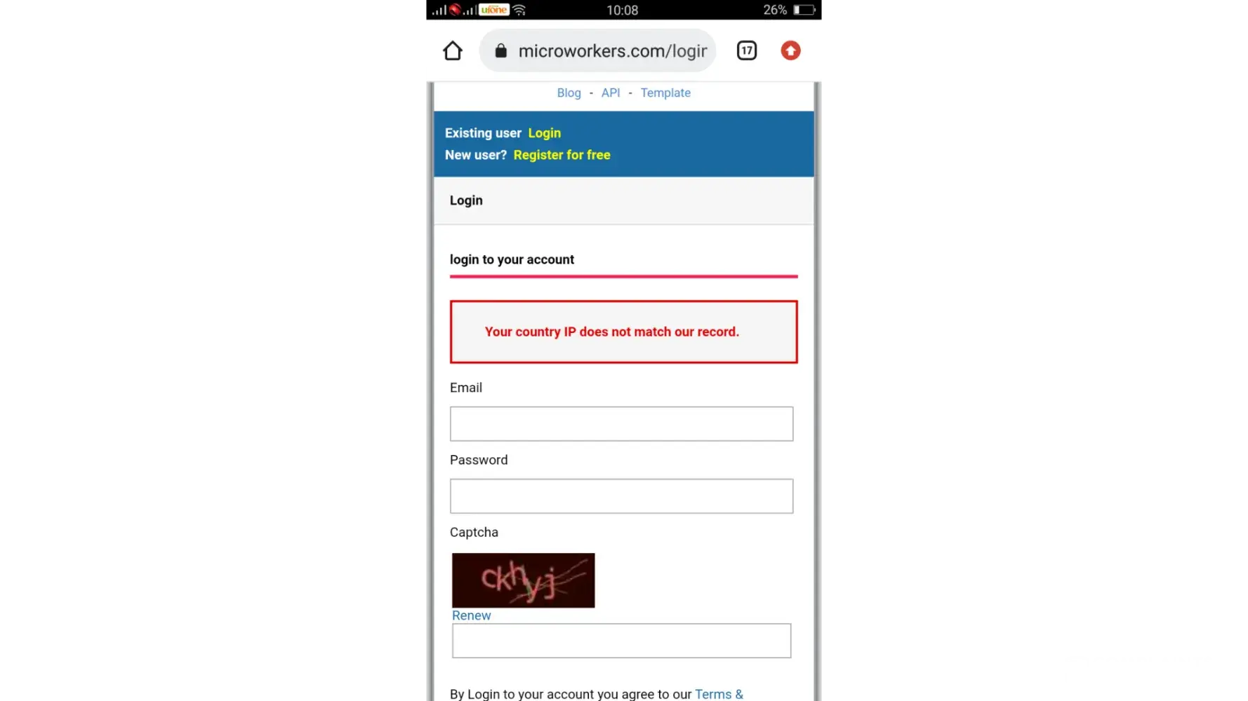 I want to work in microworker but this issue don't allow me.