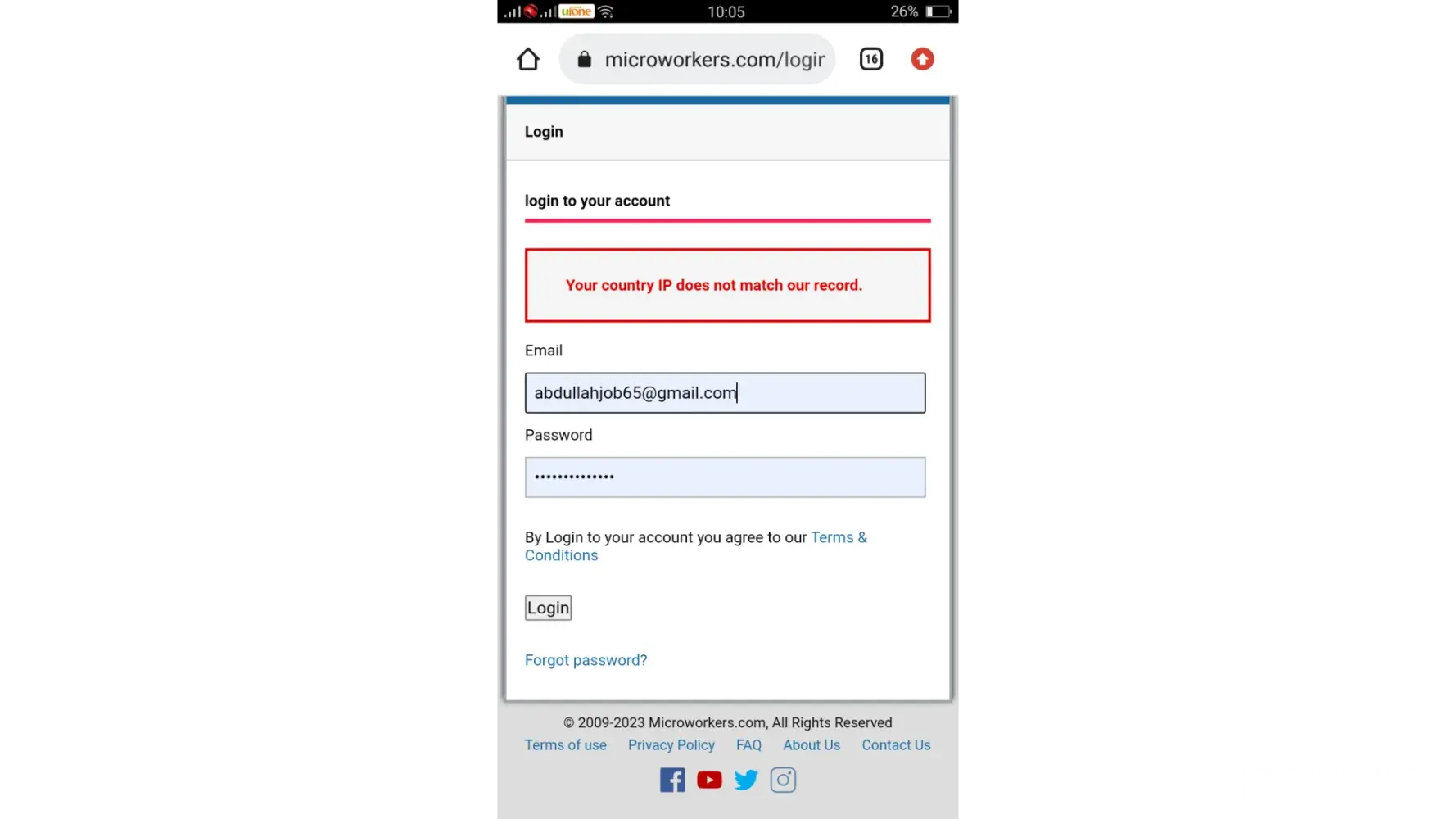 Hi how are you there? Sorry to disturb you. I was opened 1 miceoworkers account from Bangladesh but now I am in UAE for job. So I try to login my account, but can't.