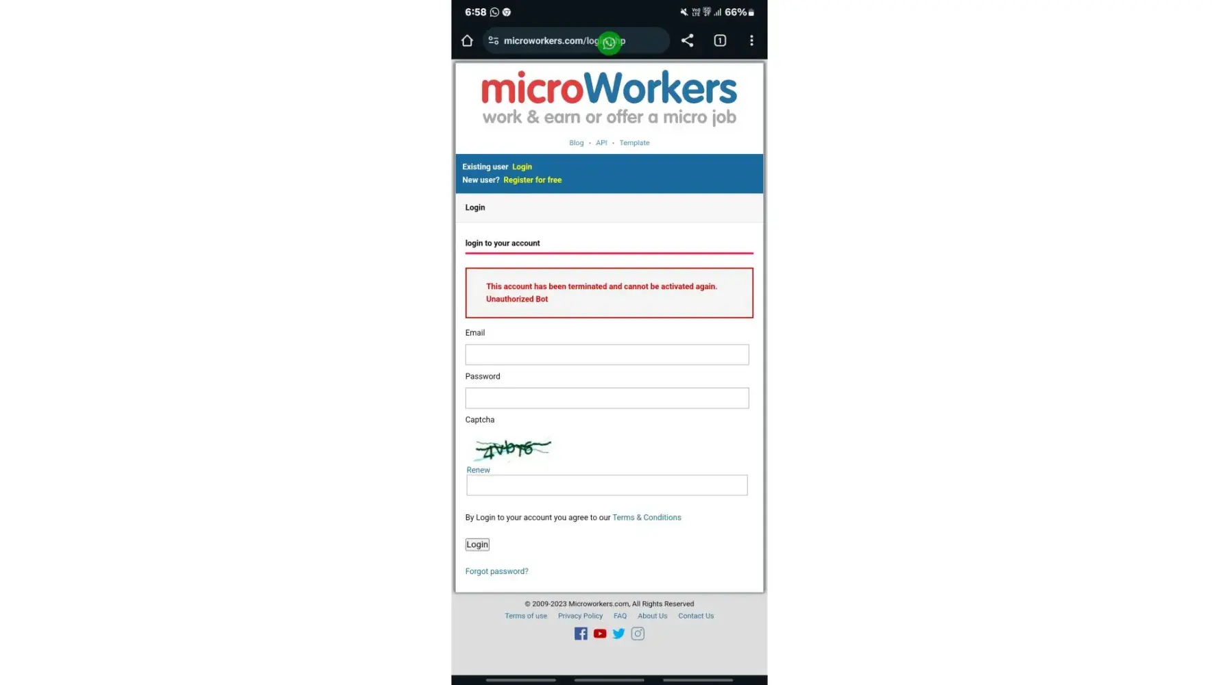 My microworkers account has terminate without doing any neagtive things (This account has been terminated and cannot be activated again.