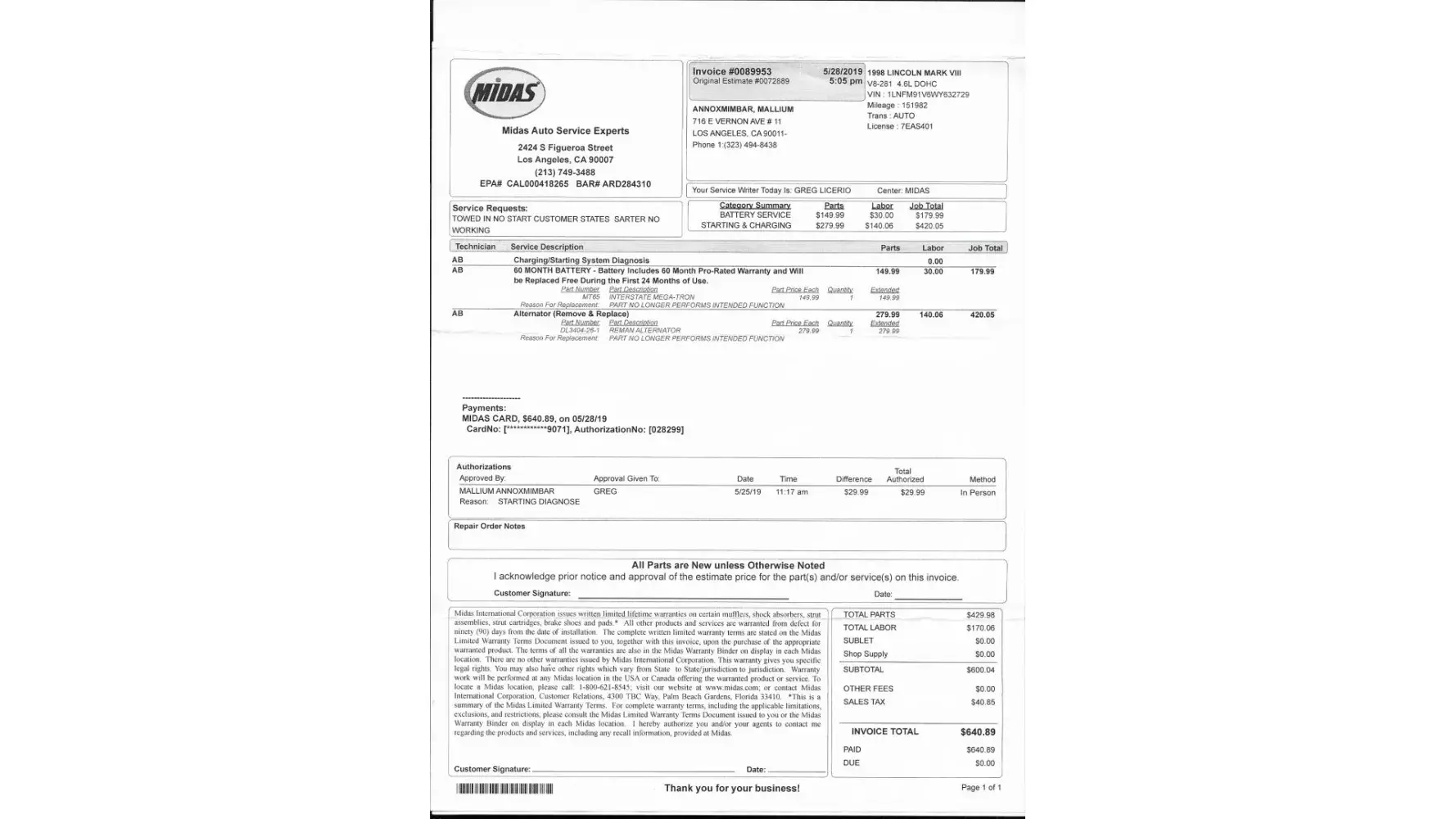 I reserved an appointment to have my 1998 Lincoln Continental Mark VIII serviced at a Midas servicing station located at 2424 Figueroa Street in Los Angeles, California. I dropped my car off on July 27, 2023, at 8:00am. When I left my Lincoln Mark VIII at the service station, the cashier told me it may take a little while but they'll get the service done. I...