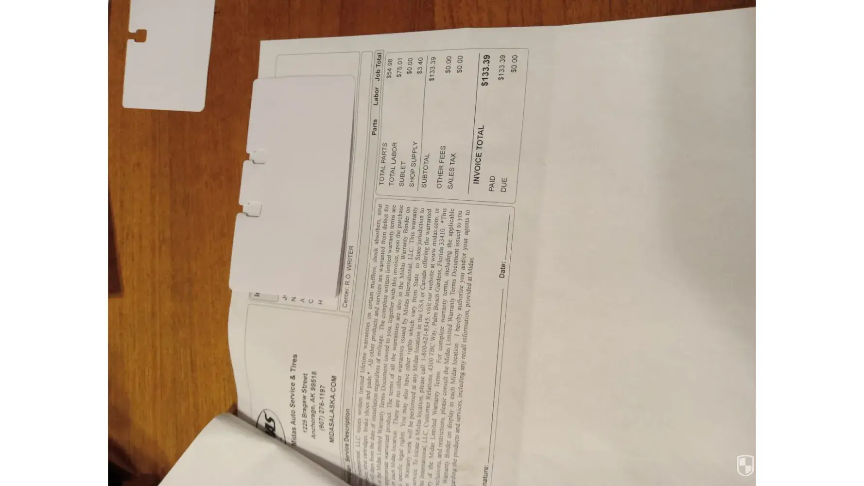 The gentleman informed me he could not see the invoice but was there to help me through mediation. Later the district manager, Jesse Flores, contacted me and stated that his store never services my vehicle. After a month, I got customer service at Midas again and informed the representative that I wanted to speak to someone at their corporate office. In addition, I told her I had a receipt and did not want to converse with the store manager, district manager, or store owner.