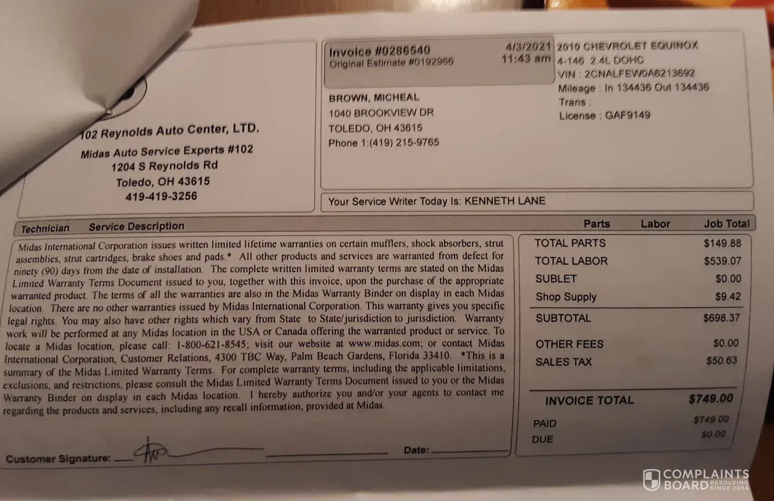 Read full complaintI am complaining about a Midas shop in Middletown, NY 10940