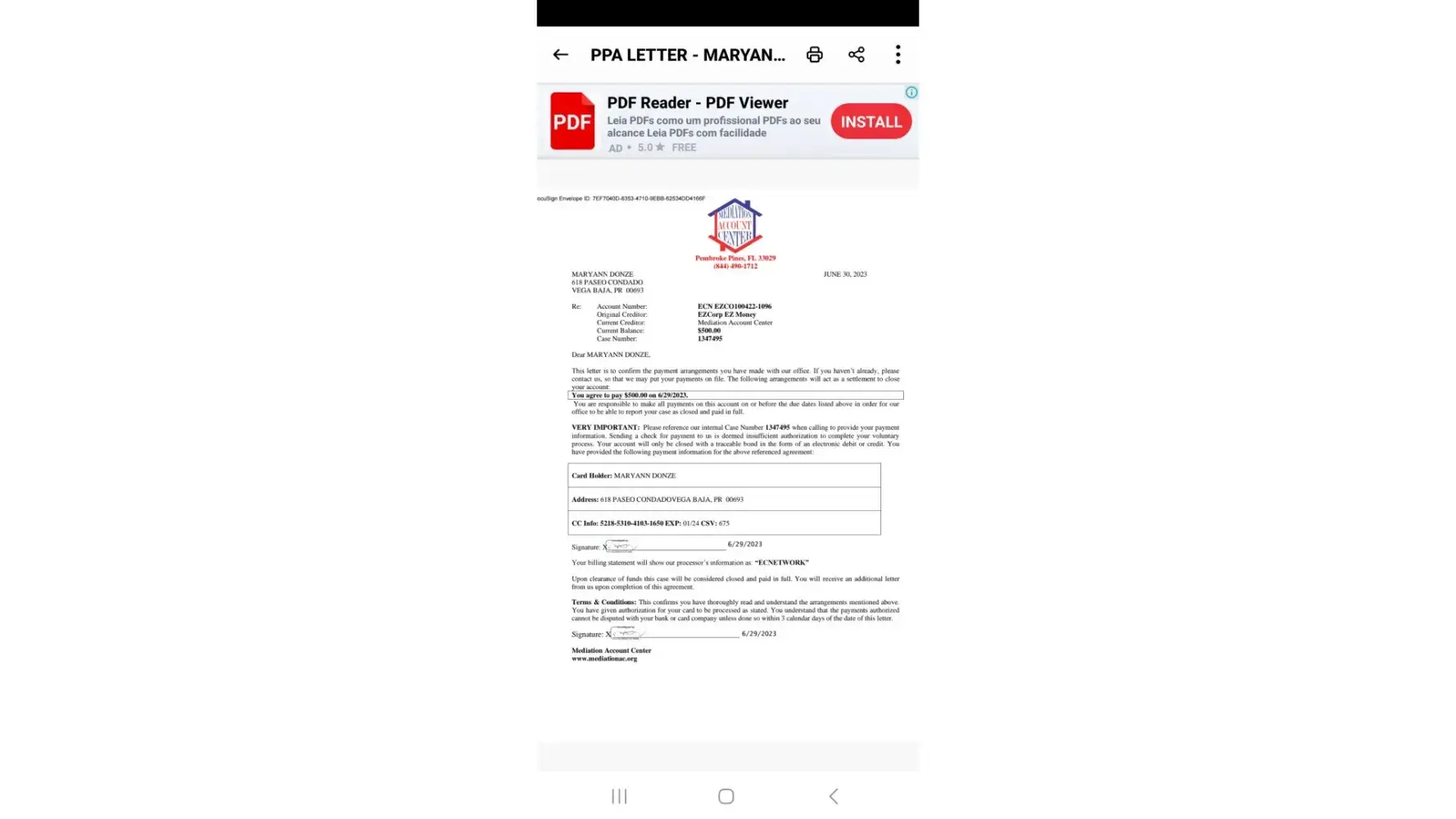 Iwas calked on april to pay 1300 i said i only had 500. Yesterday the told me i needed to pay 1300 i explained it eas settled but tgey said no they took out from my account 400.