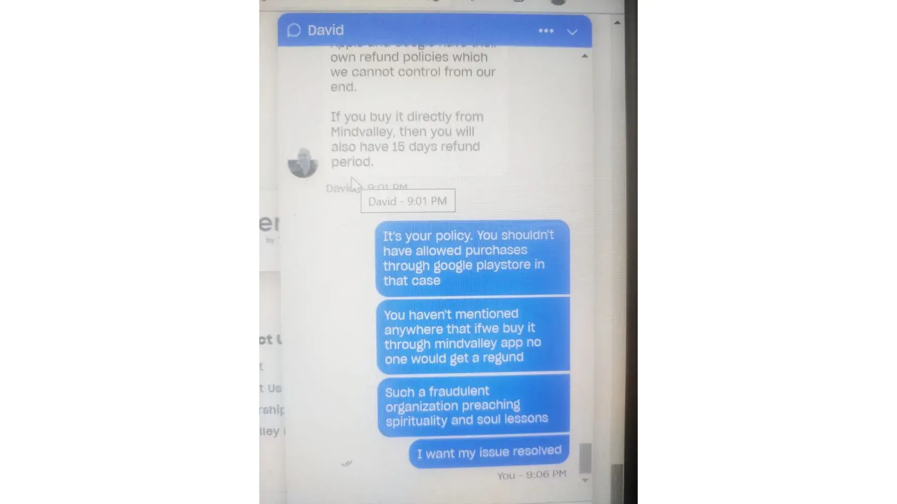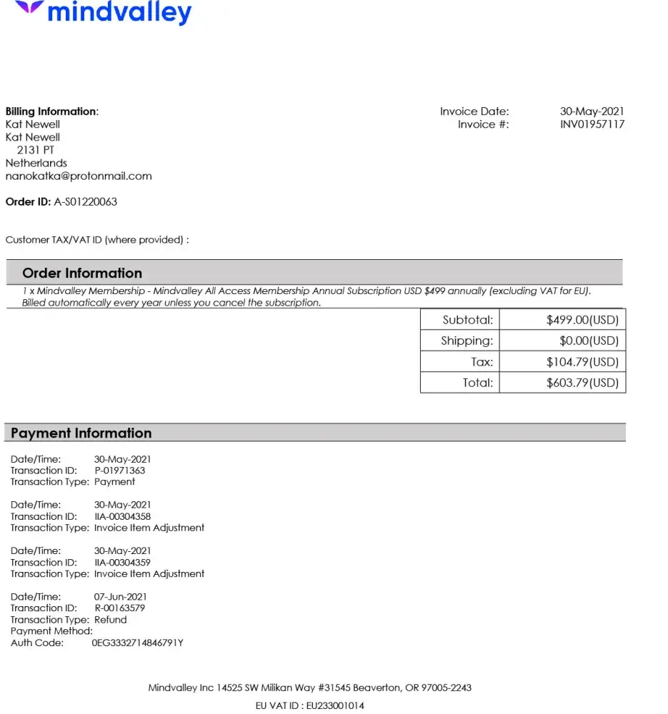 Yesterday, after working on this issue for more than an hour, and attempting to contact Mind Valley through their numerous support portals, I gave up, contacted my bank directly, and filed a formal dispute.