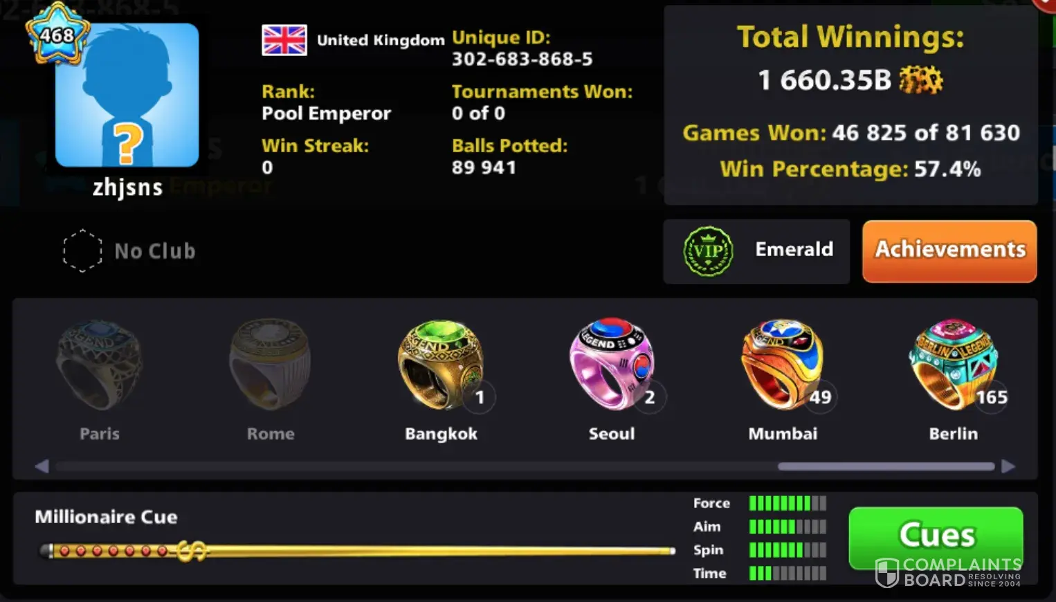 I have been playing this game for over 7 plus years I always get cheated it takes my money it glitches they have told me on numerous occasions they don't care about my complaints just don't play the game they won't reimburse me with nothing in all reality I would like to file a lawsuit with all the evidence I got... Content creators know what they are doing and this game should be shut down because real pool is not played like this