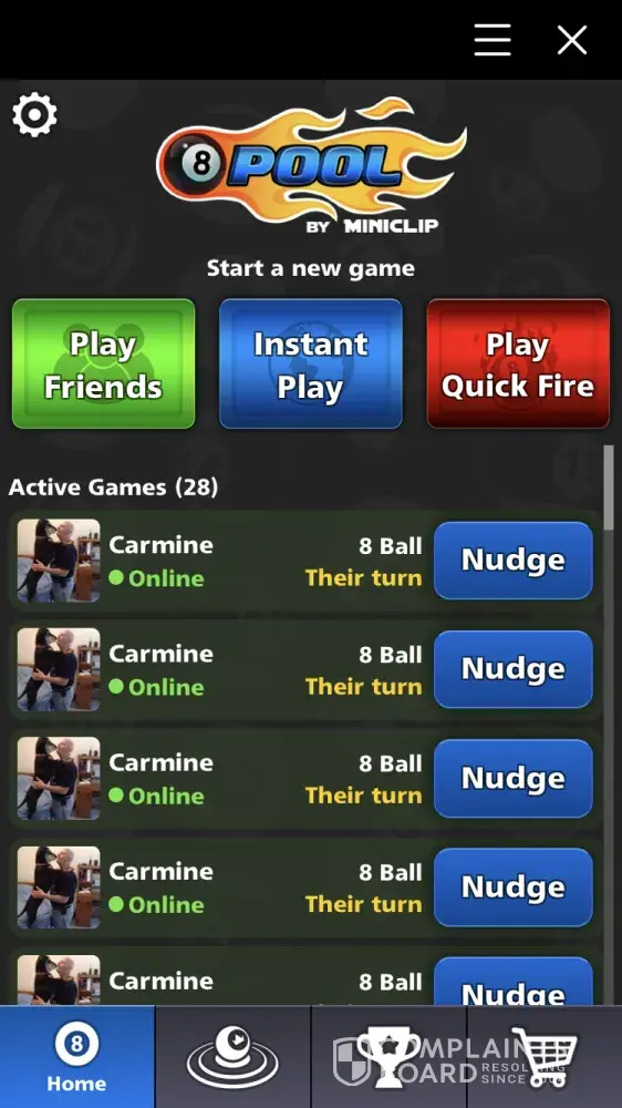 I have been playing 8 ball pool some time now and it is great. However, we've just discovered that there are many games opened but seemingly unplayable. When my friend and I push nudge for each other's games it changes to waiting. These games are not able to be played. I went from about 6-8 games to 28. We both have tried multiple times to delete them but nothing works since they are unplayable. Can you help us?