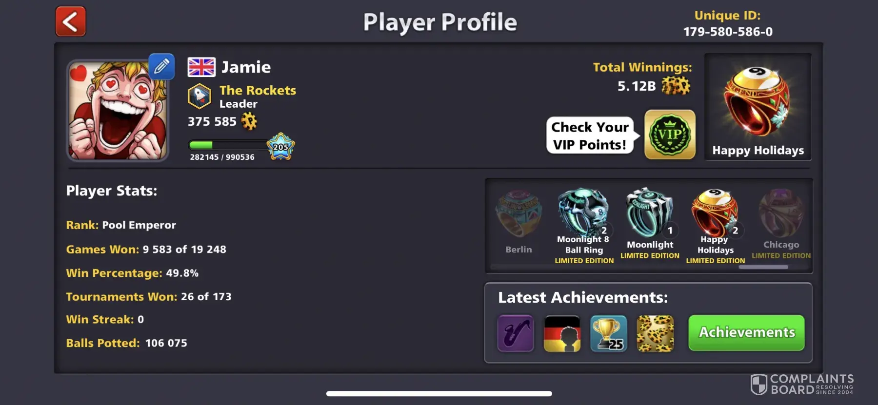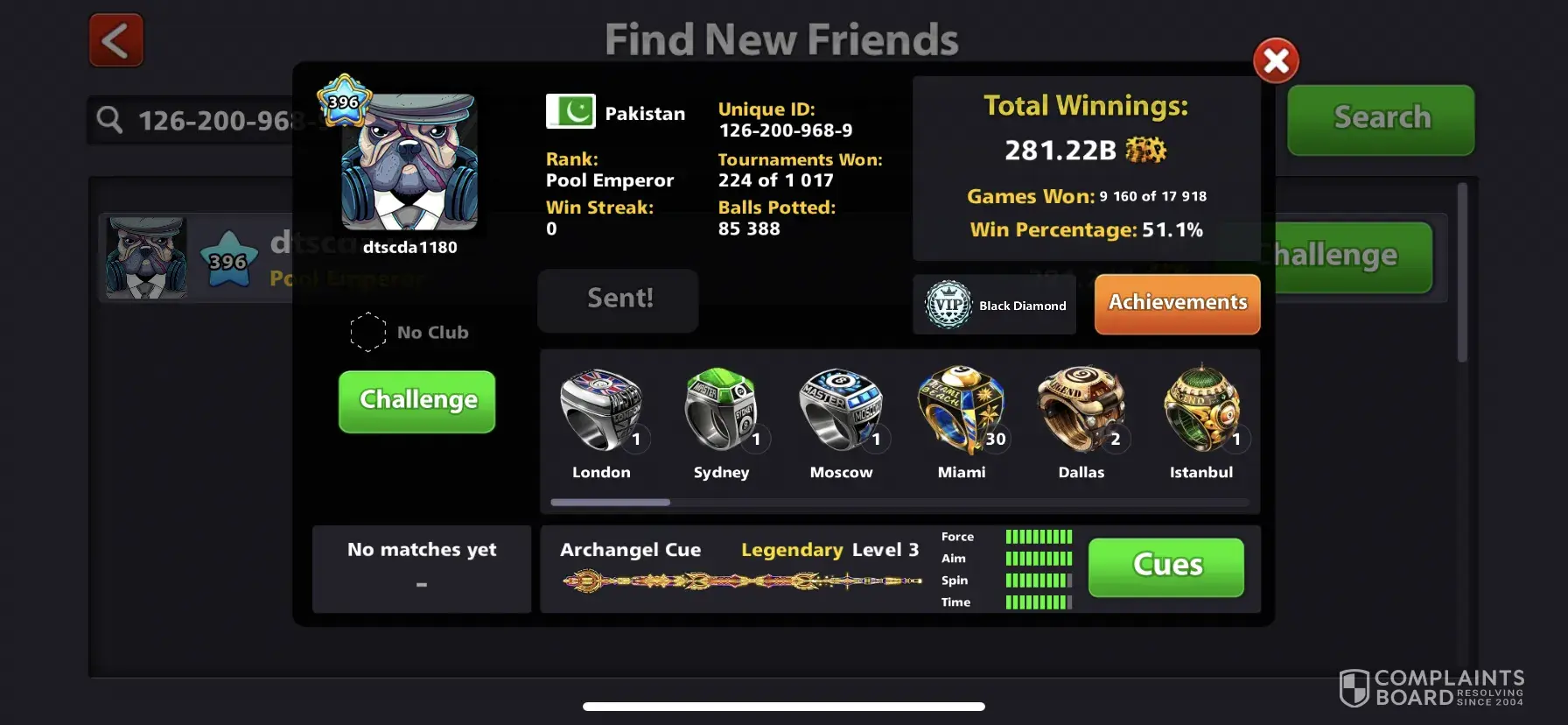 It's getting very irritating with no name players in 8ball pool they are hacking the game whenever connected 8ball game with no name players game automatically minimizing and couldn't win over them because of continue minimizing. Automatically they are winning here iam providing some pictures you can see their account and unique ID's. I suggest u to ban them permanently otherwise we were getting more and more irritation hence that cause delete the 8ball pool