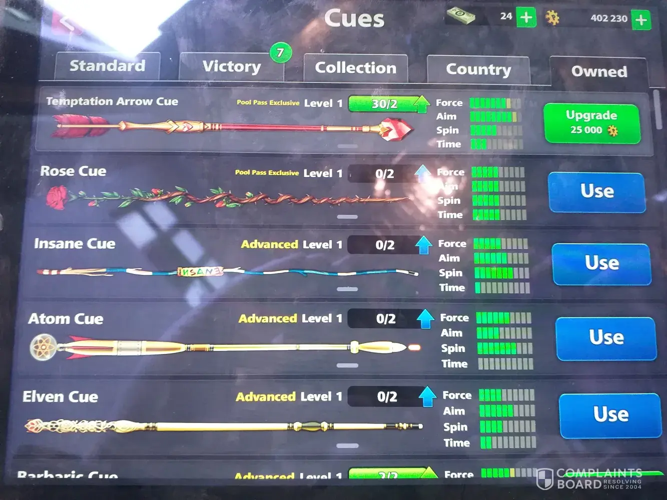 I have spent 500 coins on a game and in this game I lost because there was a issue with the cue not striking the white ball. The cue icon on side would only pool down so much meaning it was not hitting and when It did pull back fully the white ball didn't roll it just stood. I lost an opportunity . And I'm very angry about this, it's never happened before now.