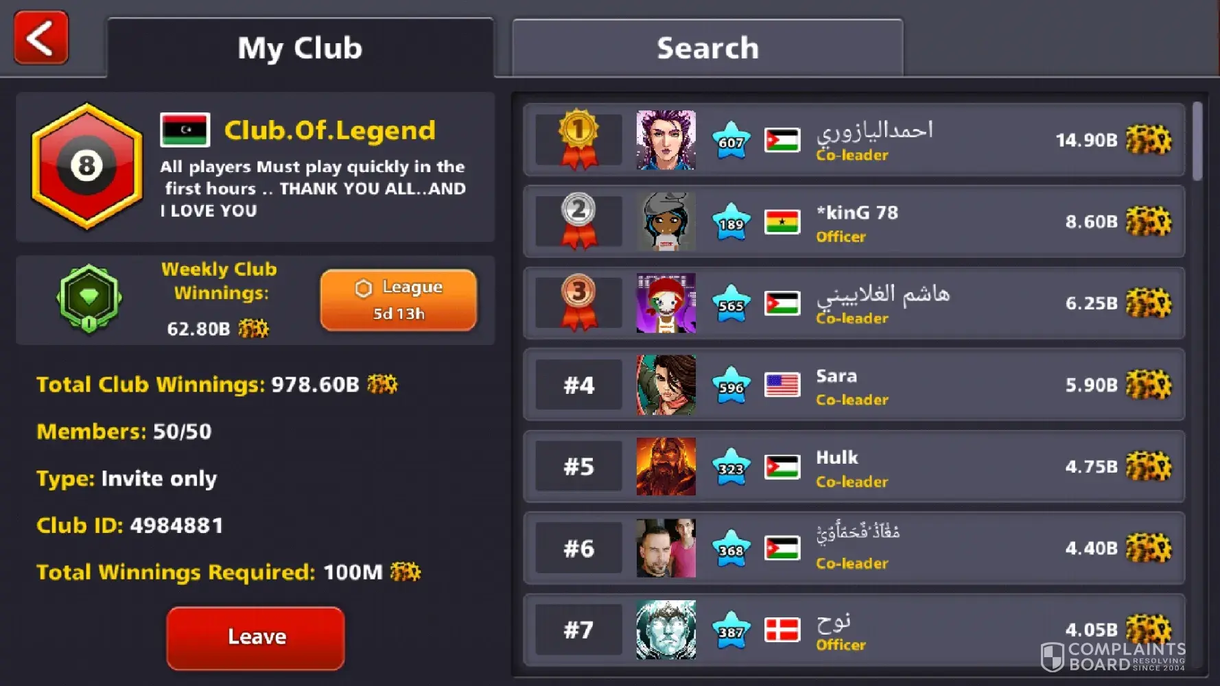Here I'm informing you about a member in 8ball pool ID 910-296-9 and ID192-613-882-5 has two different accounts in the same club ID 4984881