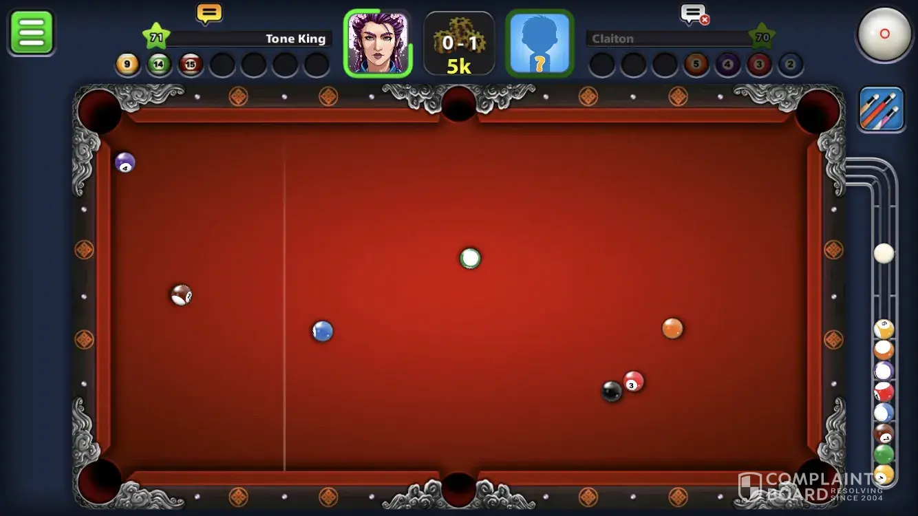 Since the complain ive been beaten by, potting the white ball, sometimes even twice a match, snokkered on the black or final ball and then gave fouls when jve not fouled. Its the pattern that this game is cheating its players from their HQ to make players pay moremoney into it.
