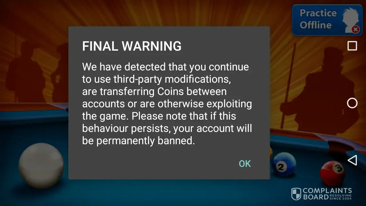 complain every week I given complain the some body doing something to my account and I give you a complaint every week and you know do s*** about it now I have 20 billion and you pick my 20 billion out I am going to get a lawyer and I'm going to f****** suit 8 poll I won my 20 billion back I spend money in the freaking game and I didn't tired they don't have any respect for me I don't know how the hell I going to hack 8 pollwith a freaking phone I spent a lot of money in the past six years you give me all my money back I stop playing the game but if you not going to give me my money back I won my 20 billion because I have a picture in a the proof that I have 20 billion