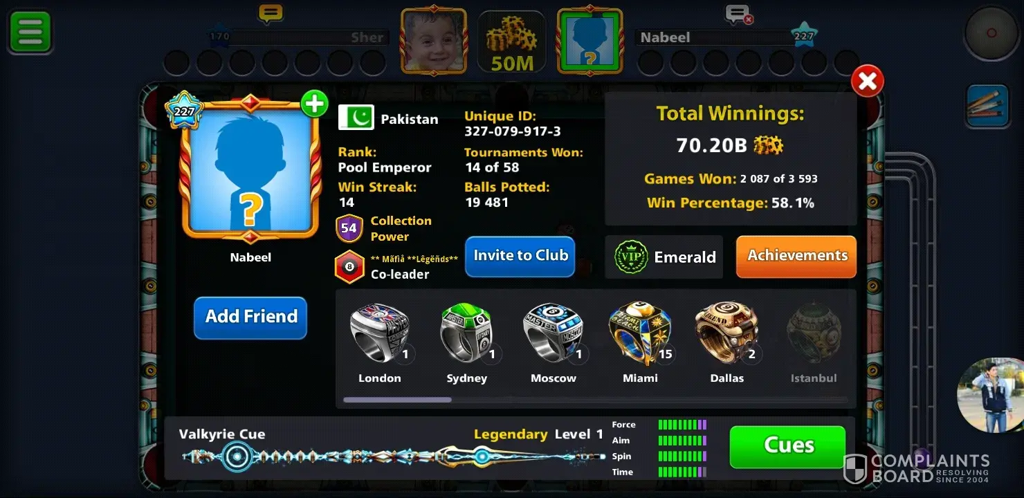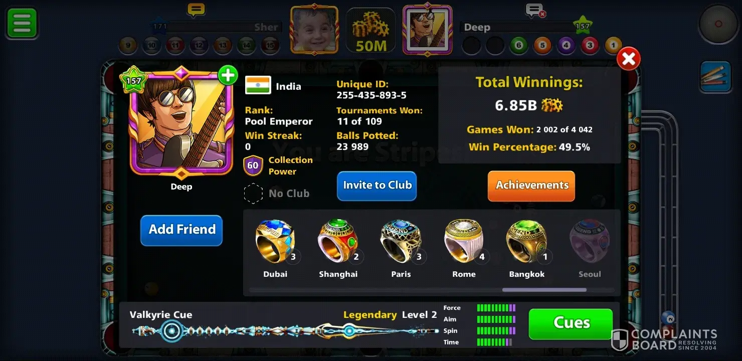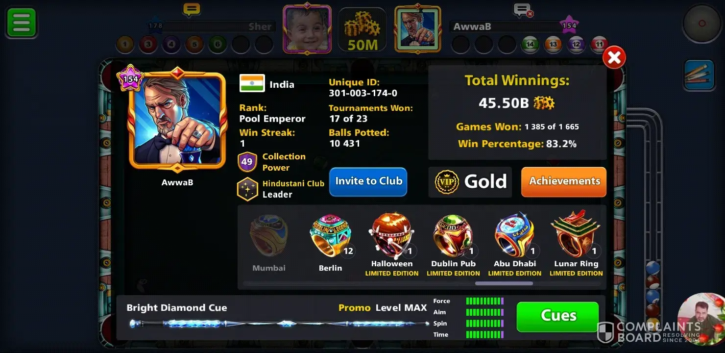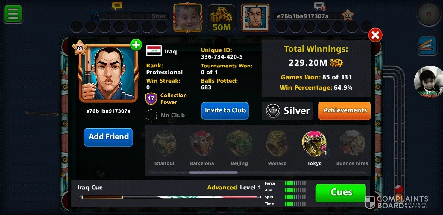 In 8 ball pool game don't show my winnings in my club and leaderboard and don't show the trophies kindly correct this isseu