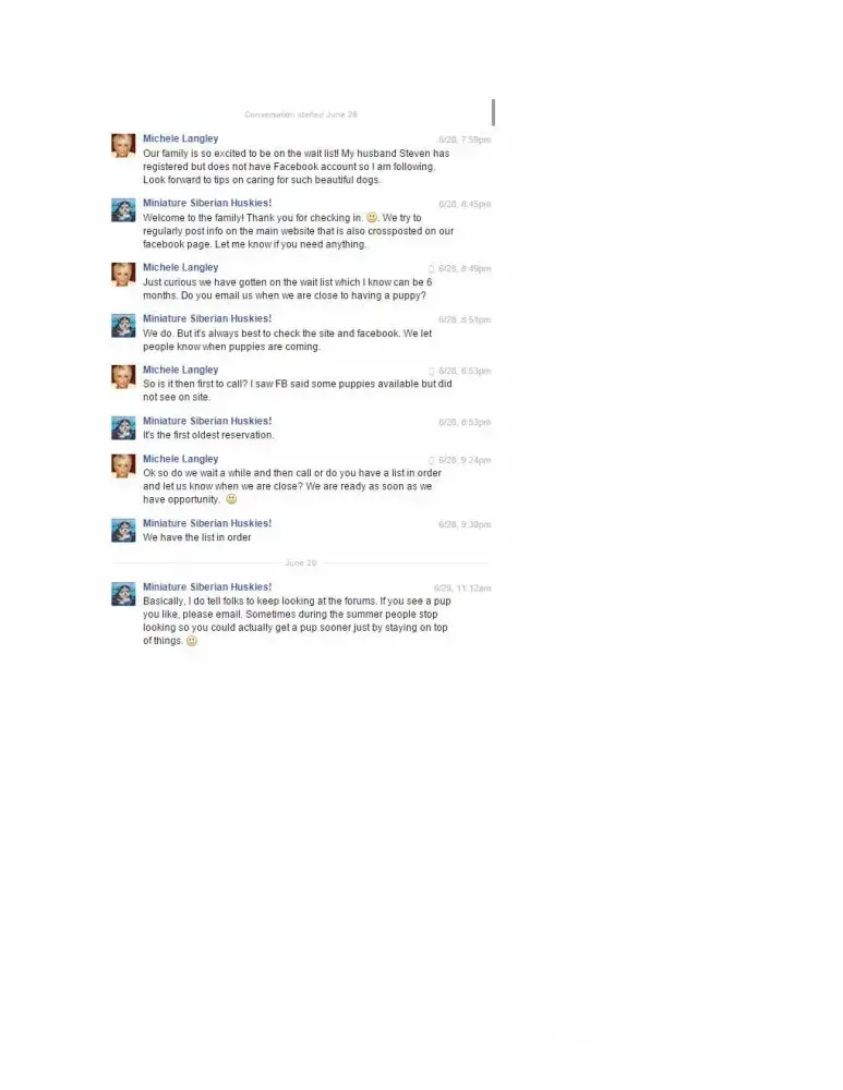 After extensive research I faced the fact that if i wanted a mini Siberian Husky i was going to have to go through this site. I read all the other posts on this site so i was very hesitant, but I decided to give the benefit of doubt after speaking with a happy customer I found on Instagram. I have now reached out twice with no response. Which sure, maybe they have a lot of incoming emails, but my boyfriend had emailed too and immediately got a response. I believe my email asked too many questions in which she was not confident in answering, so she choose to disregard it now twice. The pups are cute, so its a shame its such a poor customer experience working with this site! We will be going with a Pomsky instead which we can have verified we are getting what we paid for.