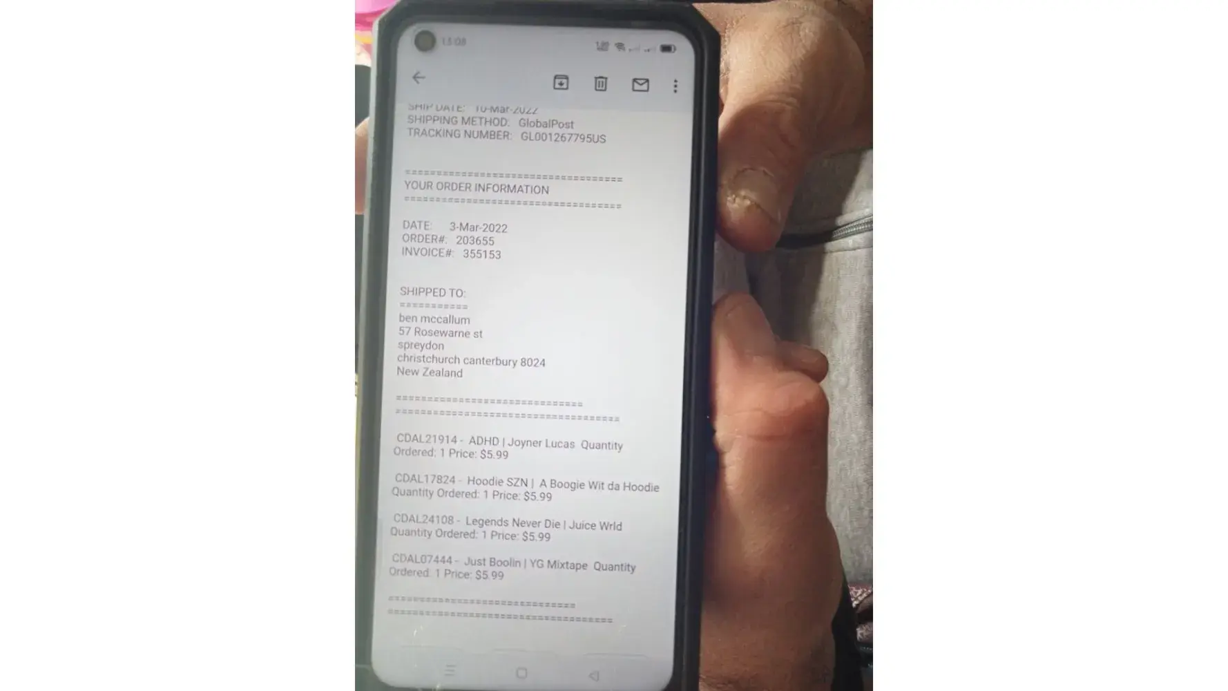 I didn't receive orders for two cd's, the first one is by crunchy black & la chat titled"hood" & the other cd is by 3-6 mafia titled "laws of power" the crunchy black & la chat cd was ordered in December 2022 or January 2023 & the 3-6 mafia cd was ordered early April 2023. Please send a email for the timeline for shipment & please send a e-mail for the day the shipment is received, thank you.