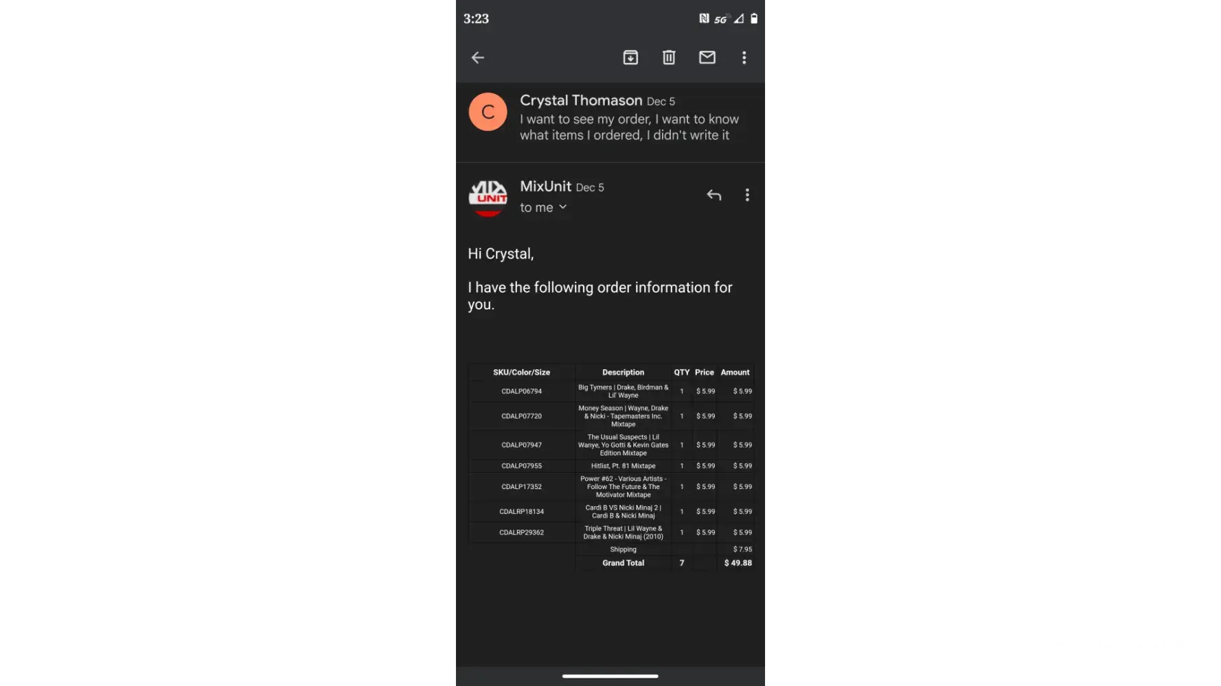 I never did receive my package I ordered on 5/05/2023 and here it is 6/20 2023 and I have not received anything from mix unit all it keep saying that my order is being processed I have asked them to contact me by phone and e-mail have not received anything I have not had this problem from them before this I spent over $40.00 dollars with them this do not make any sense to me I am going to report them to bbb.